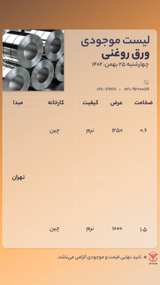 اعلام موجودی ورق روغنی (سرد)