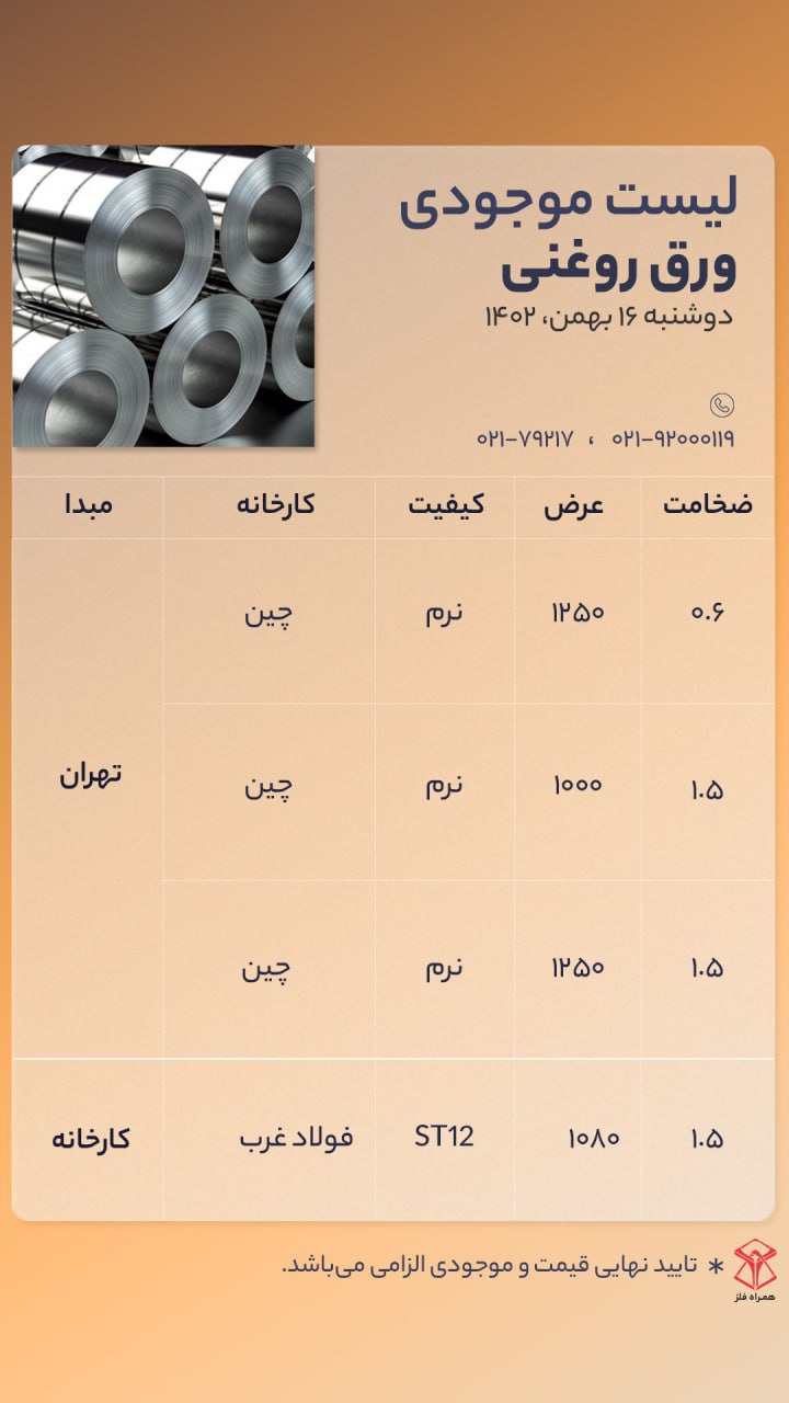 ⚜️#همراه_فلز_آسیا ⚜️ ❇️تهیه و تامین انواع ورق های فولاد ی و استیل 💠ورق روغنی 💠ورق سیاه 💠ورق گالوانیزه 💠انواع مقاطع طویل (تیر آهن و میلگرد و نبشی و ناودانی و ...