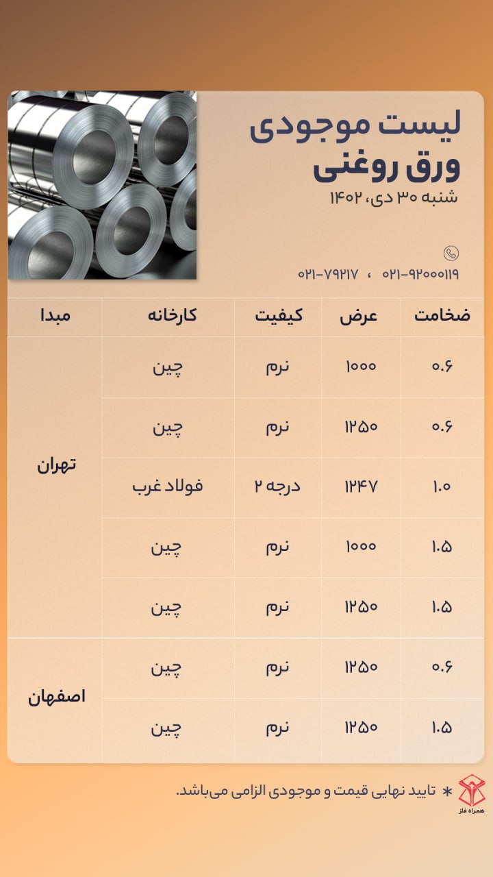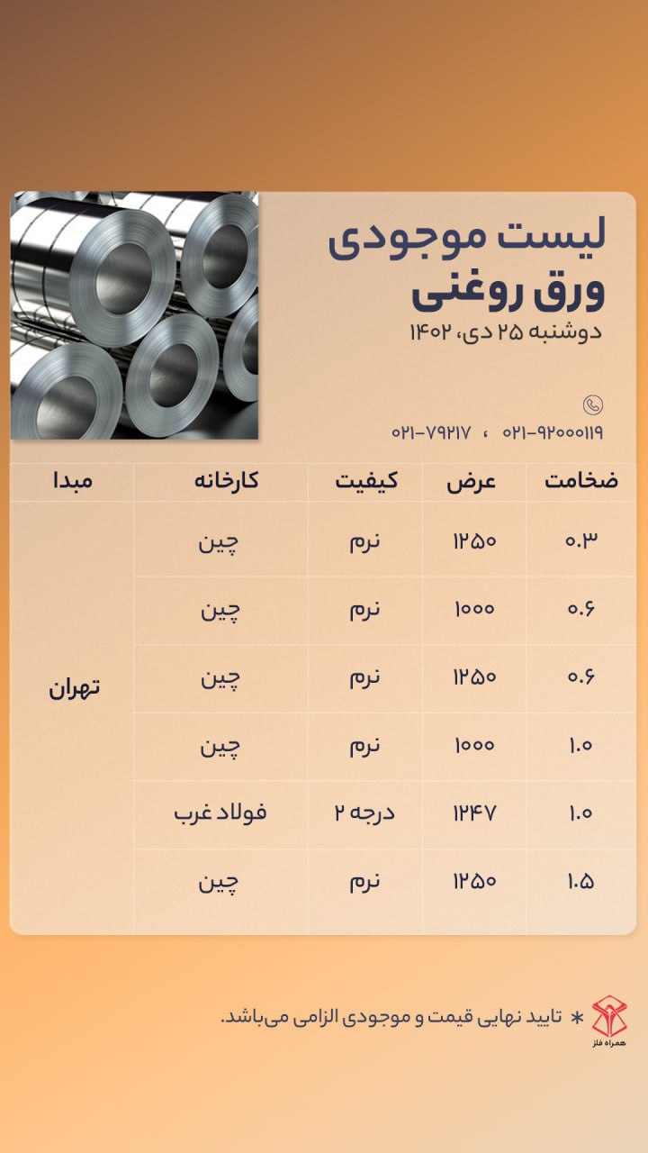 ⚜️#همراه_فلز_آسیا ⚜️ ❇️تهیه و تامین انواع ورق های فولاد ی و استیل 💠ورق روغنی 💠ورق سیاه 💠ورق گالوانیزه 💠انواع مقاطع طویل (تیر آهن و میلگرد و نبشی و ناودانی و ...