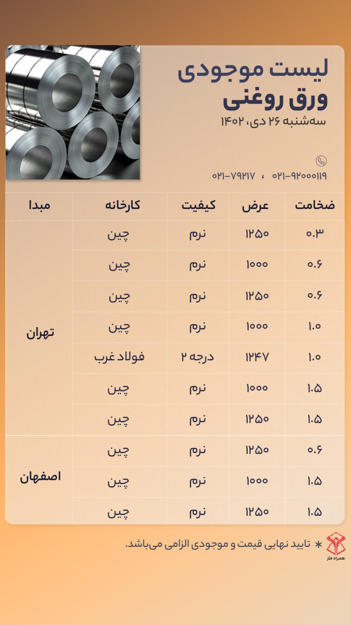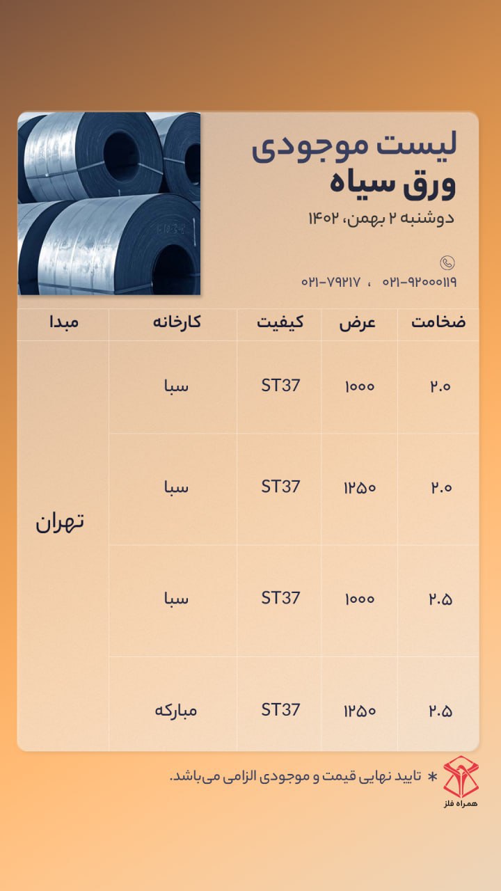 [ Album ] ⚜️#همراه_فلز_آسیا ⚜️ ❇️تهیه و تامین انواع ورق های فولاد ی و استیل 💠ورق روغنی 💠ورق سیاه 💠ورق گالوانیزه 💠انواع مقاطع طویل (تیر آهن و میلگرد و نبشی و ...
