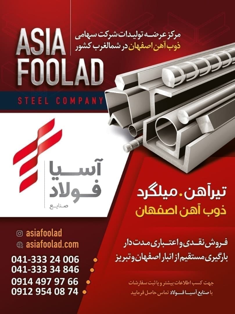 آسیا_فولاد 🔸مرکز عرضه تولیدات شرکت سهامی ذوب آهن اصفهان در شمالغرب کشور بارگیری مستقیم از اصفهان ⬅️تیرآهن، میلگرد ذوب آهن اصفهان 📱09911465754 📞 33334846- 041 د ...