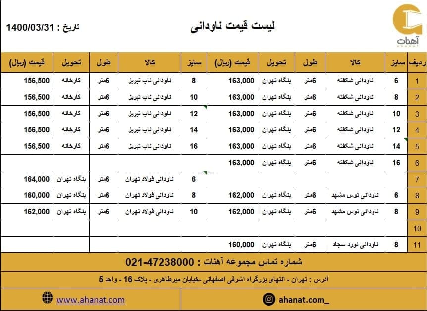 مشخصات و قیمت ناودانی به دلیل نوسانات قیمت جهت اطلاع از تغییرات با کارشناسان ما تماس حاصل فرمایید. ☎️ 021-47238000 📞 09198776648