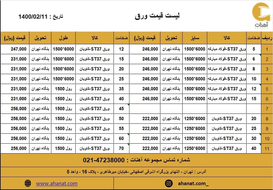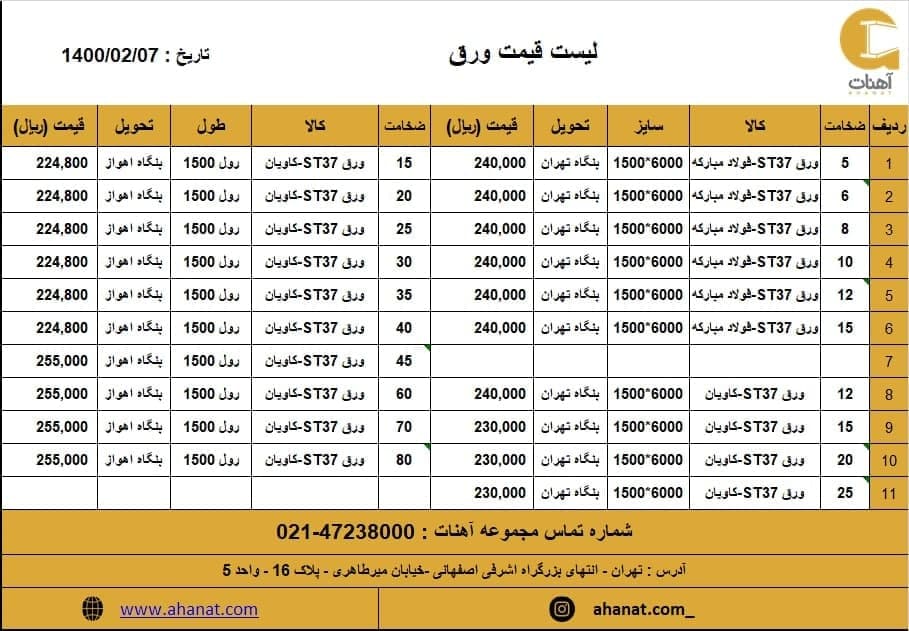 #ورق #سیاه #آلیاژی #استیل #گالوانیزه #رنگی #روغنی #بنگاه_تهران مشخصات و قیمت ورق به دلیل نوسانات قیمت جهت اطلاع از تغییرات با کارشناسان ما تماس حاصل فرمایید. ☎ ...
