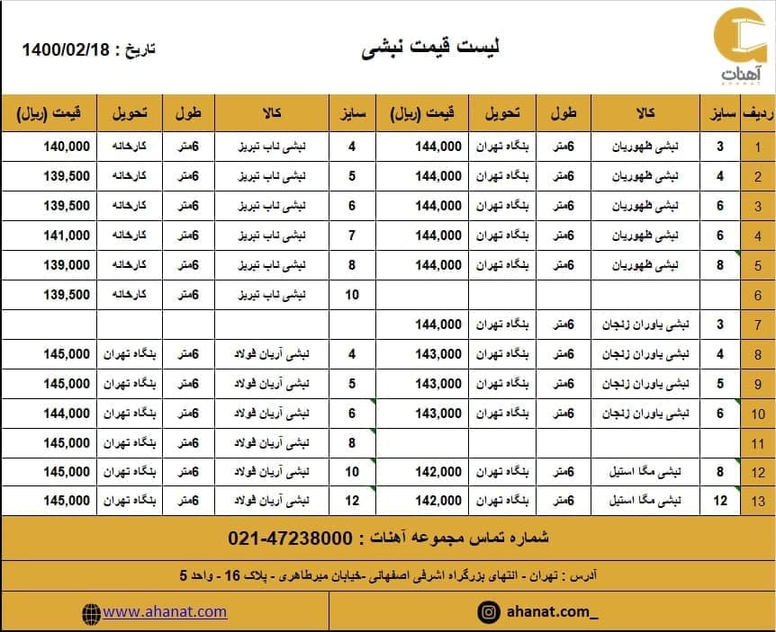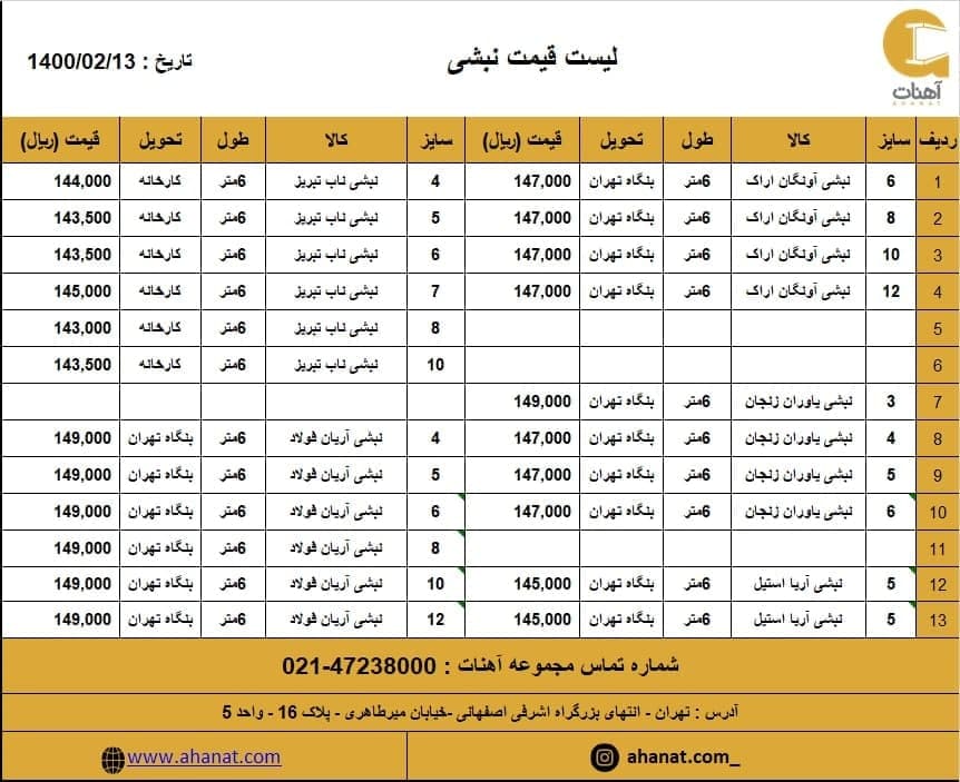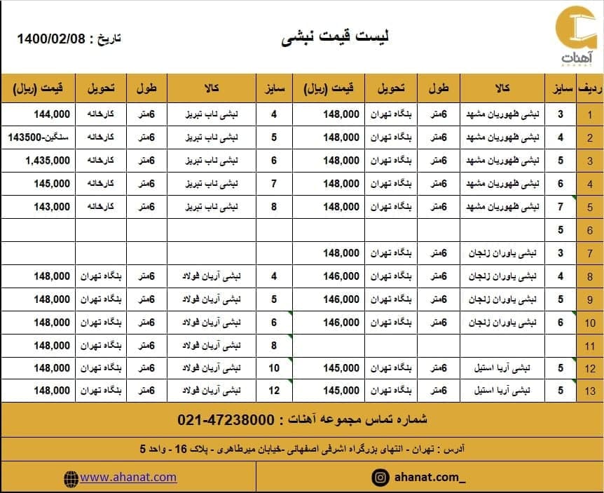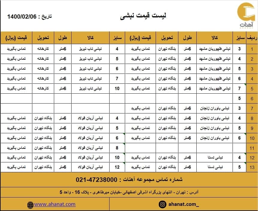 #پروفیل تهران صابری #قیمت_پروفیل #صابری #پروفیل_ساختمانی #قیمت_آهن_آلات #مقاطع_فولادی #پروفیل_صابری #قوطی #آهنات به دلیل نوسانات قیمت جهت اطلاع از تغییرات ب ...