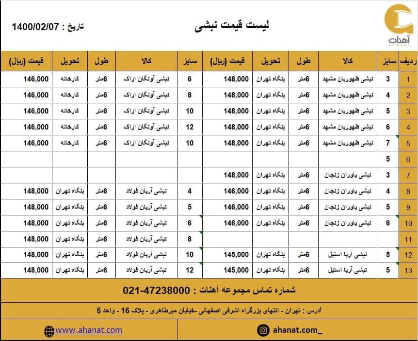 #پروفیل تهران صدرا #قیمت_پروفیل #تهران_صدرا #پروفیل_ساختمانی #قیمت_آهن_آلات #مقاطع_فولادی #پروفیل_تهرانصدرا #قوطی #آهنات به دلیل نوسانات قیمت جهت اطلاع از ت ...