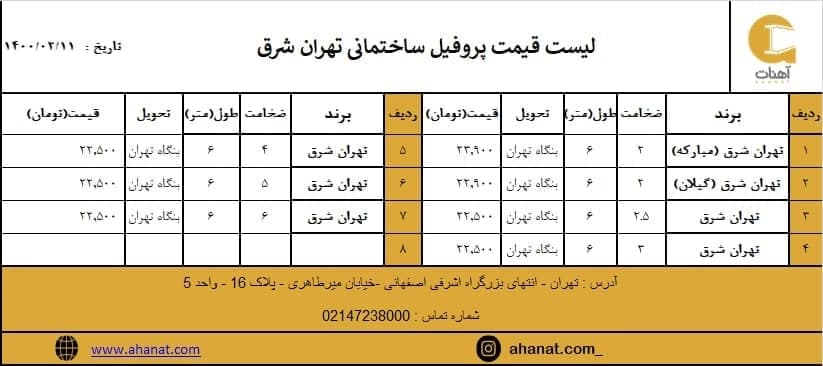 #پروفیل ساختمانی تهران شرق #قیمت_پروفیل #تهران_شرق #پروفیل_ساختمانی #قیمت_آهن_آلات #مقاطع_فولادی #پروفیل_تهرانشرق #قوطی #آهنات به دلیل نوسانات قیمت جهت اطلا ...