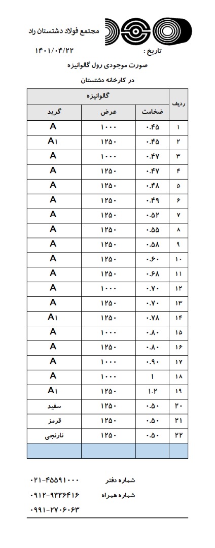 1400/11/30 فروش ورق گالوانیزه از ضخامت 0.2 الی 1.5 در مجتمع فولاد دشتستان 021-45591000 داخلی 312-304--305