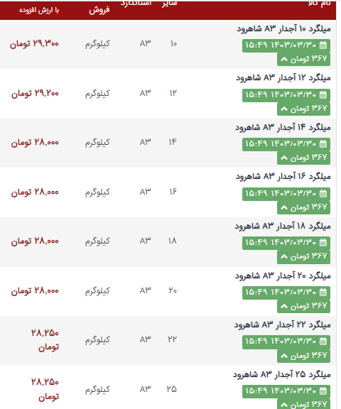 اعلام موجودی میلگرد