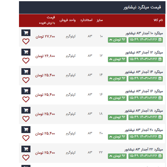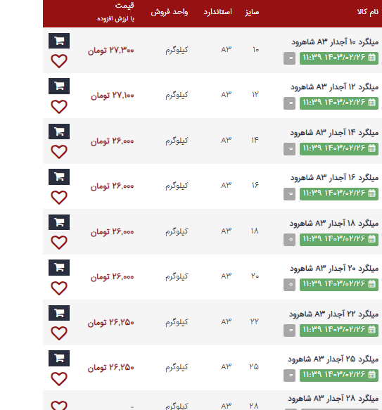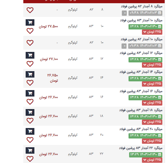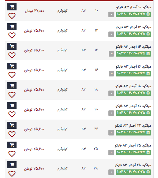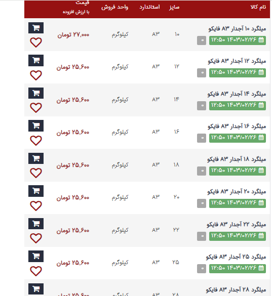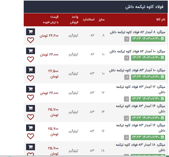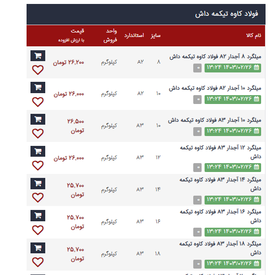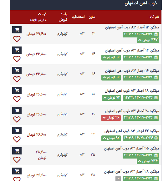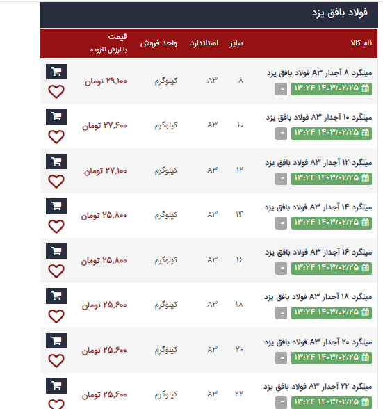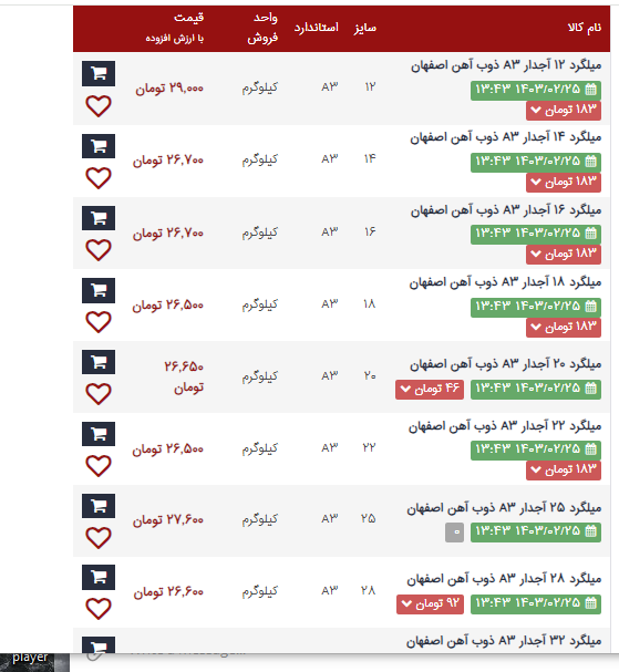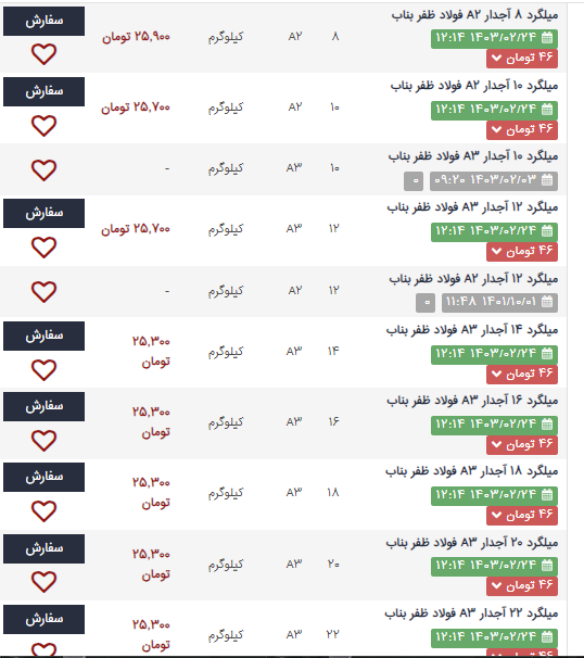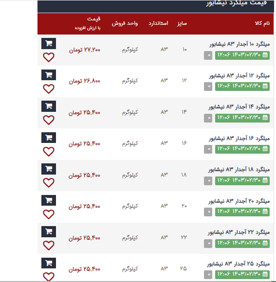 اعلام موجودی آهن پخش میلگرد نیشابور