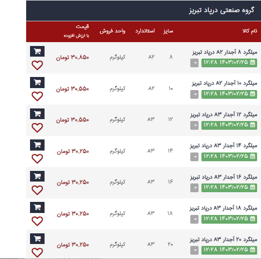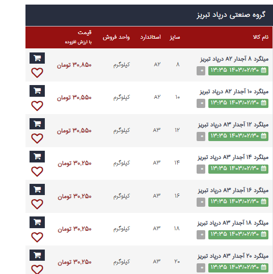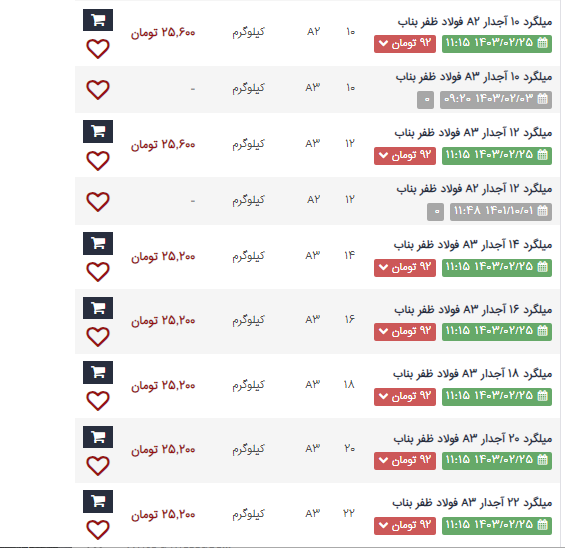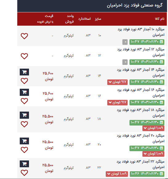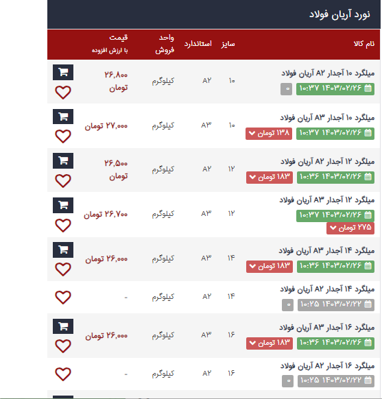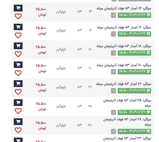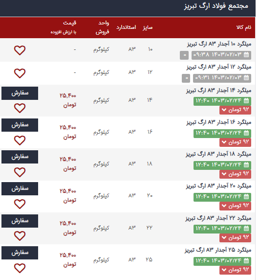 اعلام موجودی آهن پخش میلگرد ارگ تبریز