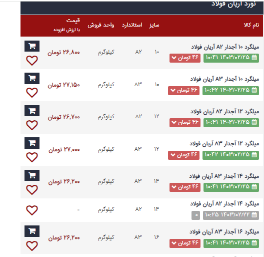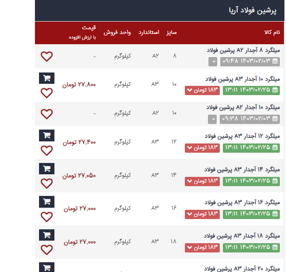 اعلام موجودی آهن پخش میلگرد آریان فولاد