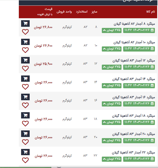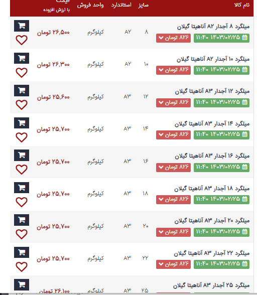 اعلام موجودی آهن پخش میلگرد حسن رود گیلان