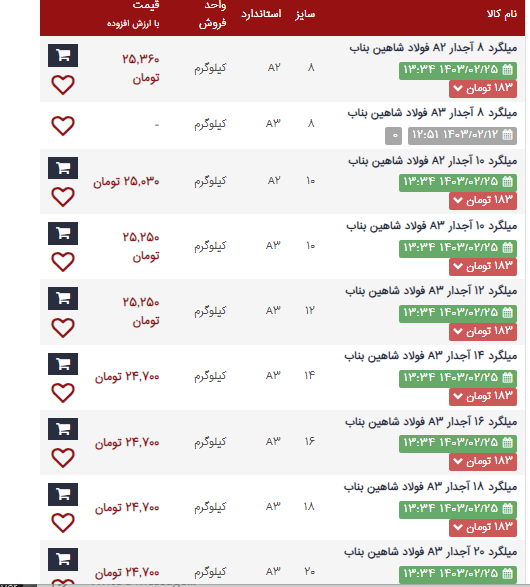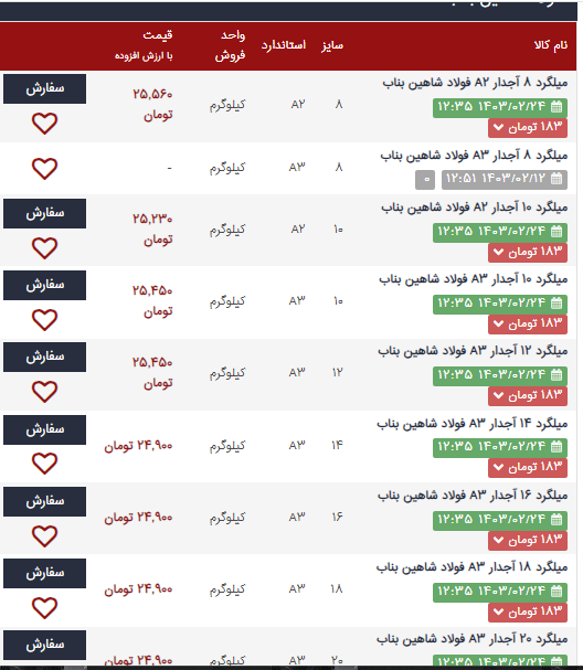 اعلام موجودی آهن پخش میلگرد شاهین بناب