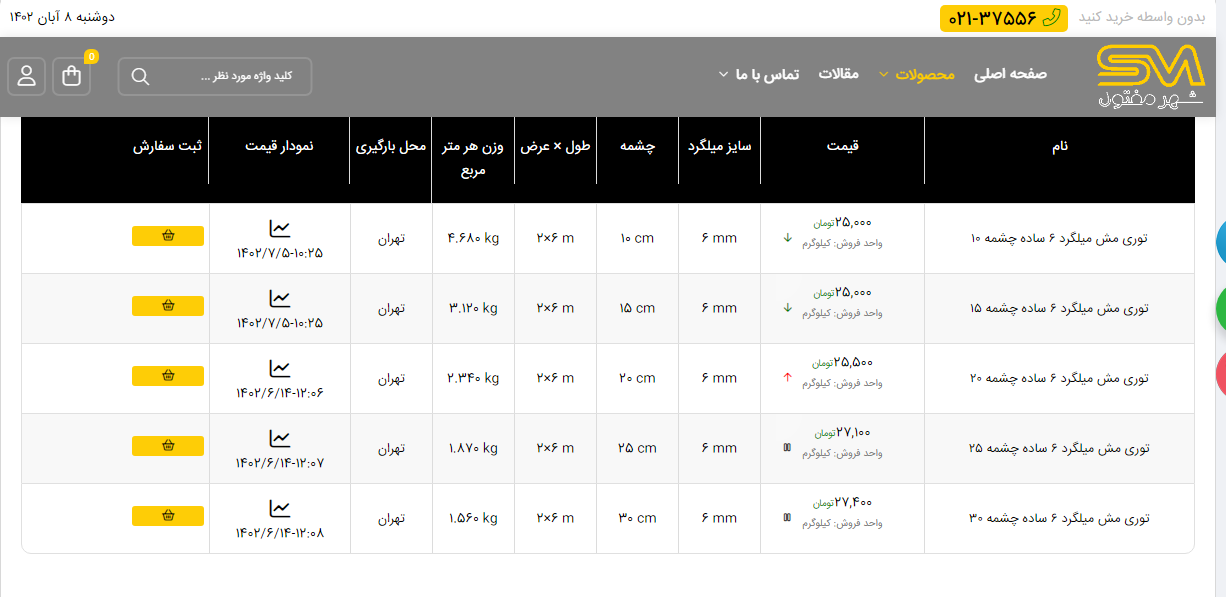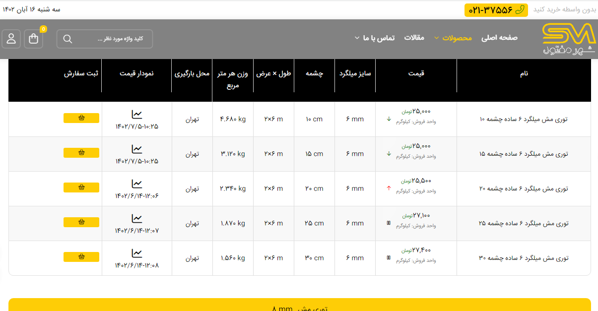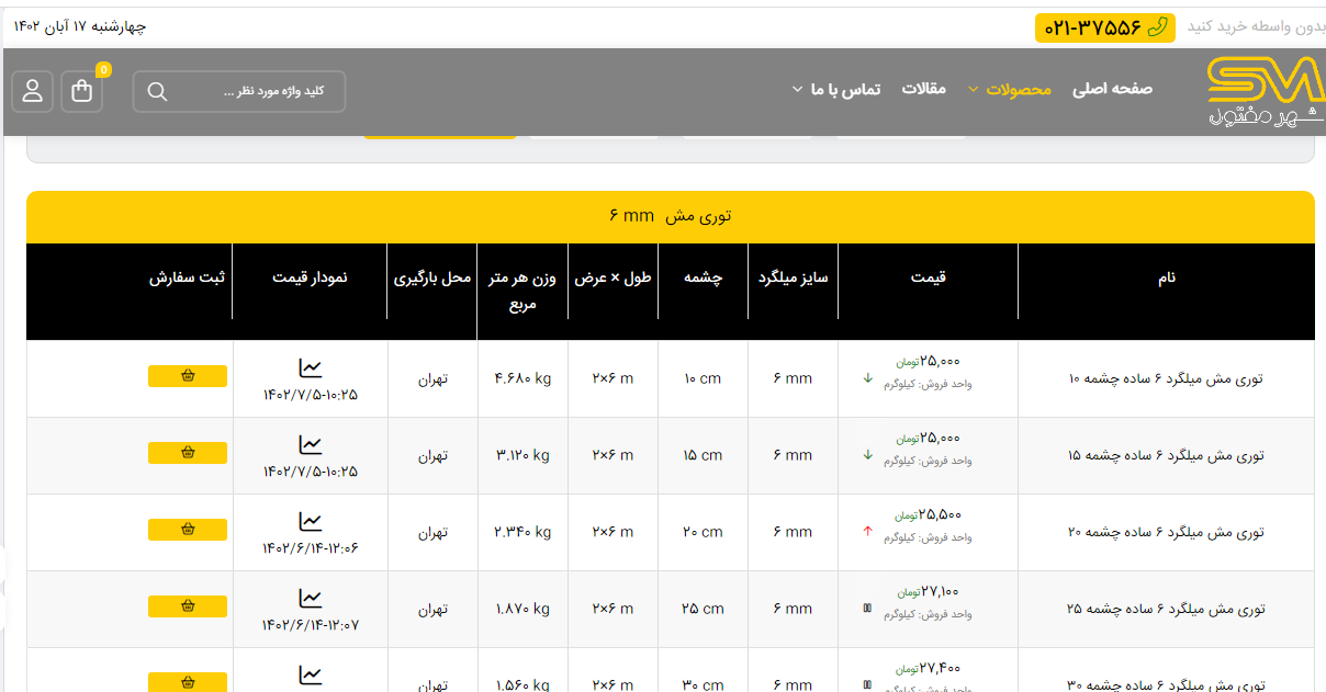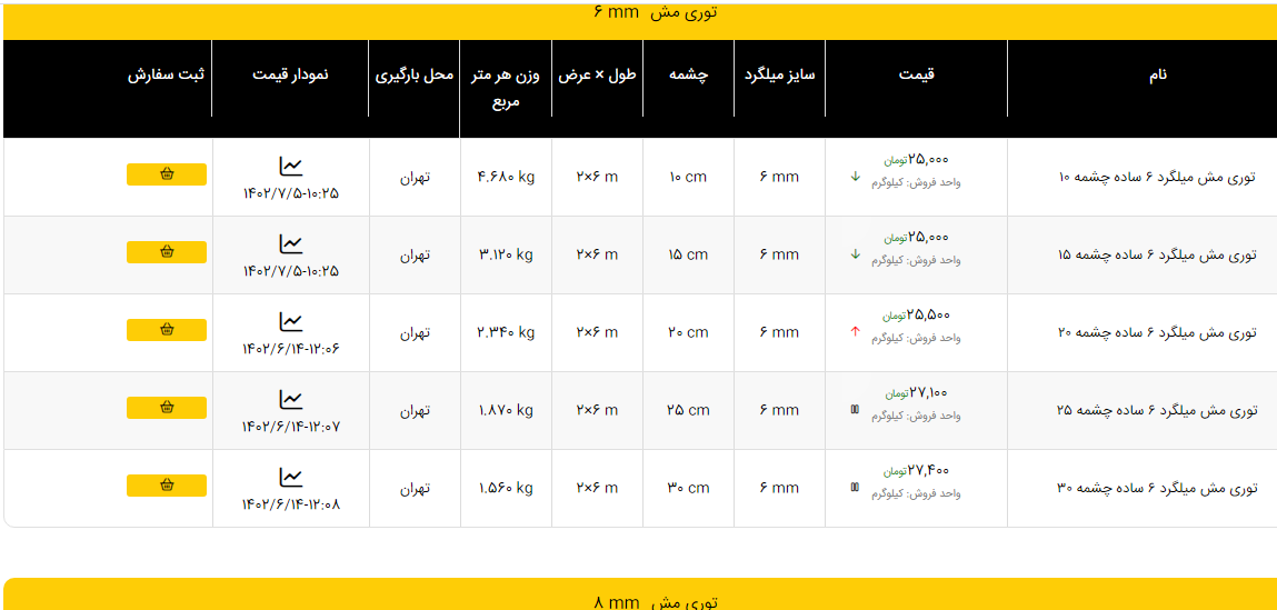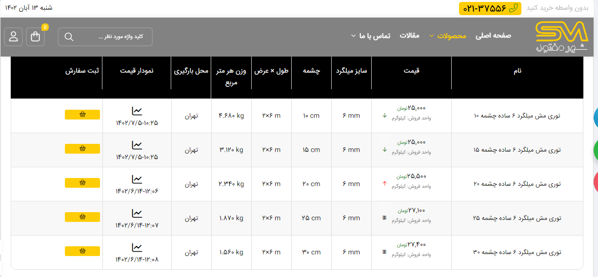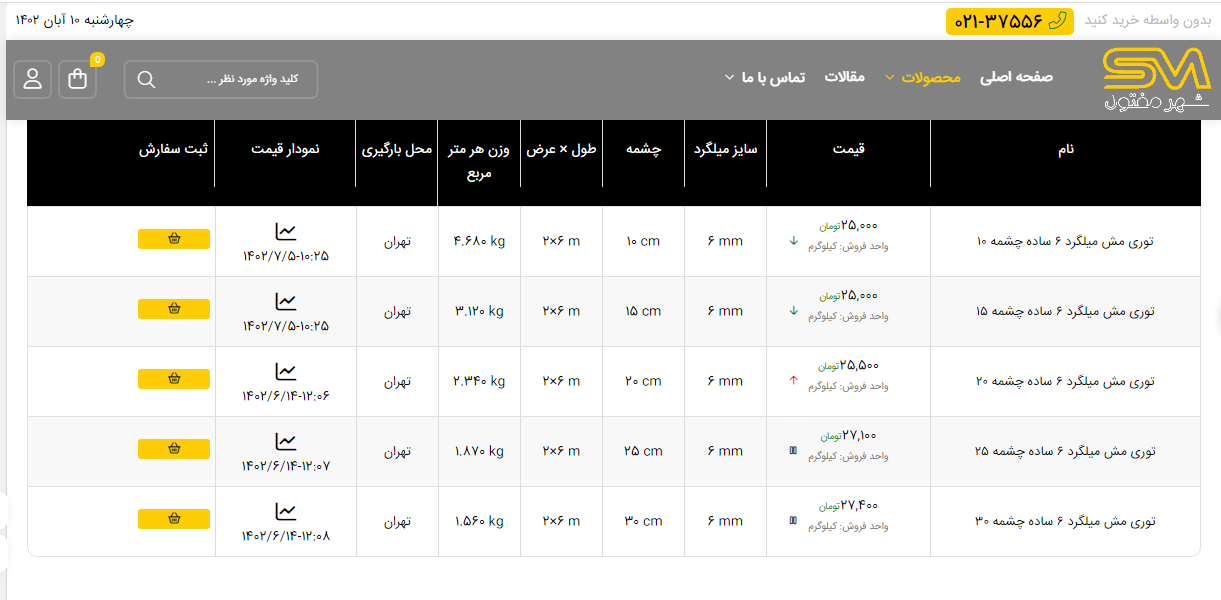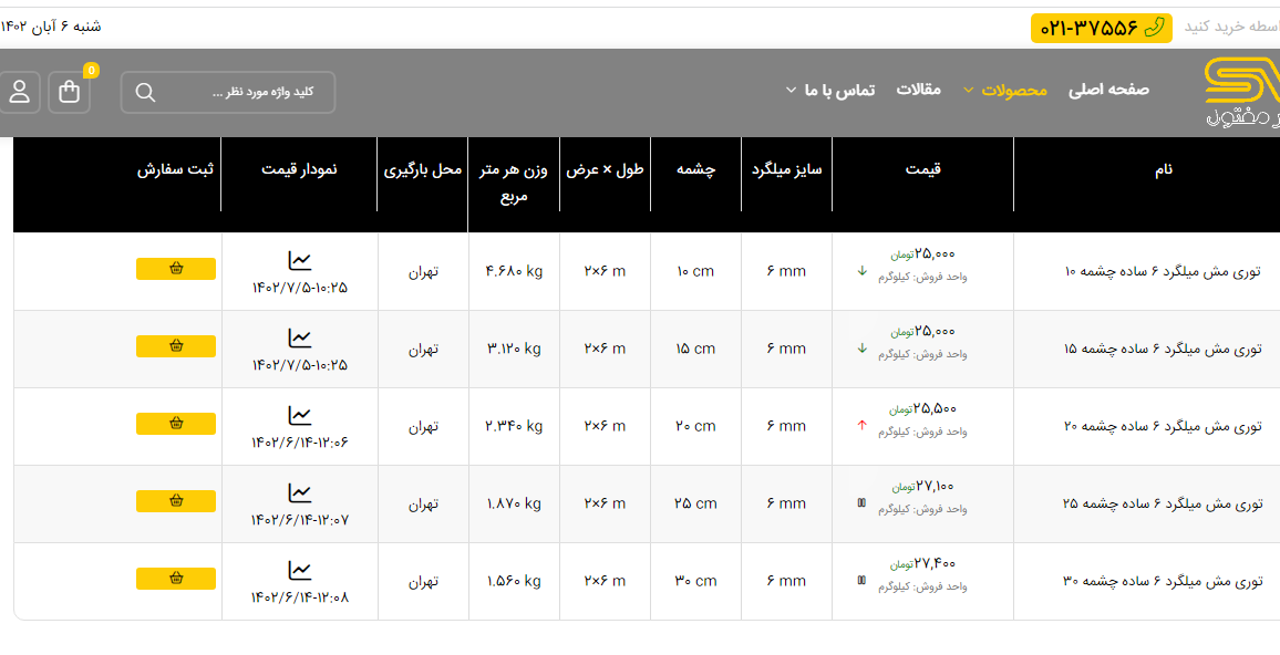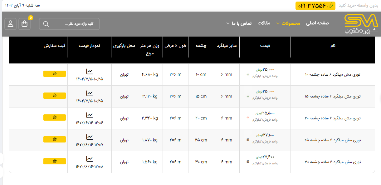 اعلام موجودی انواع توری شهر مفتول