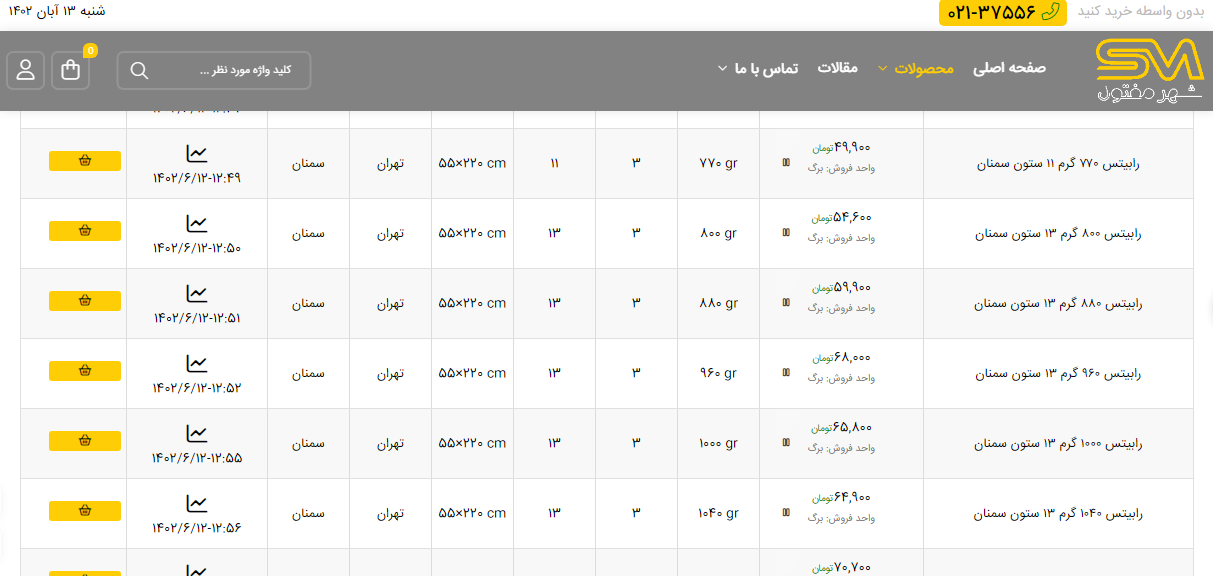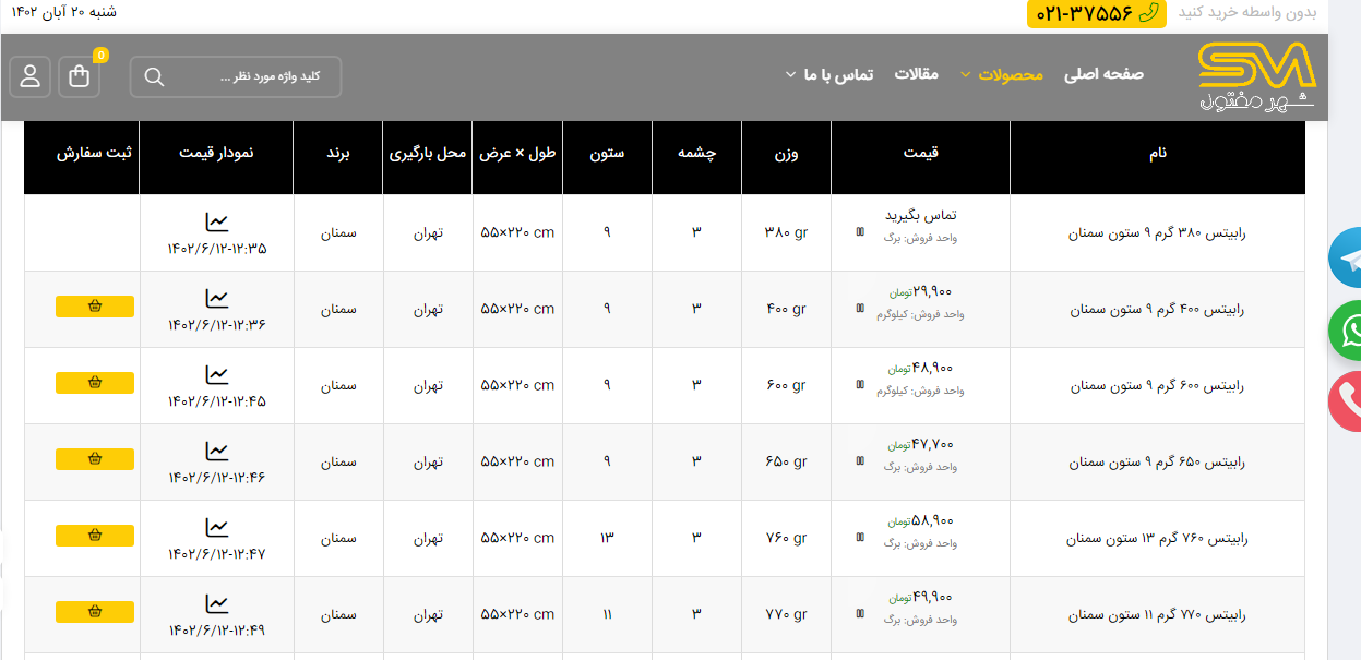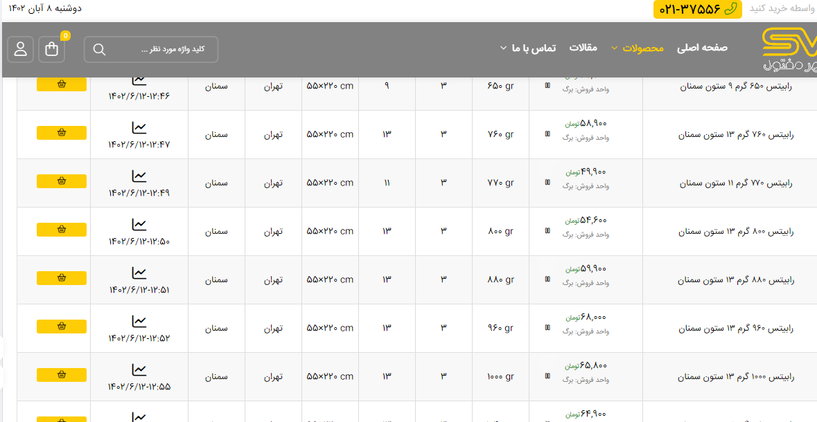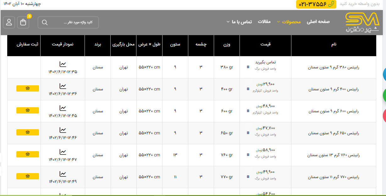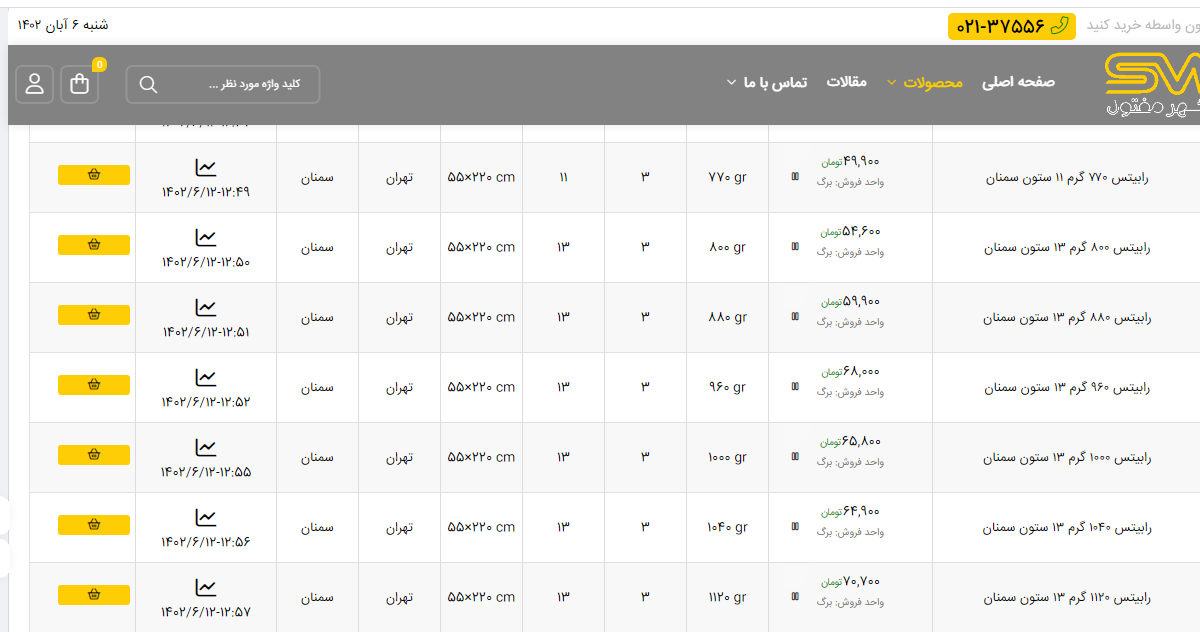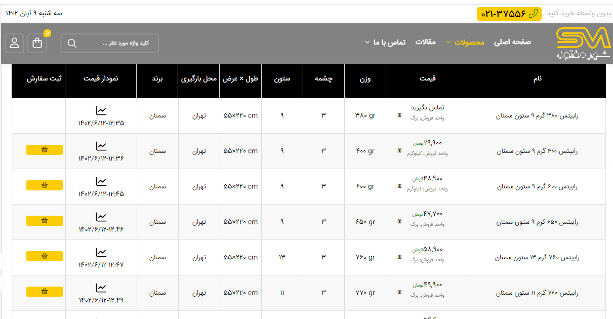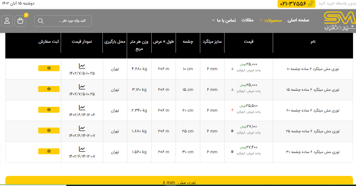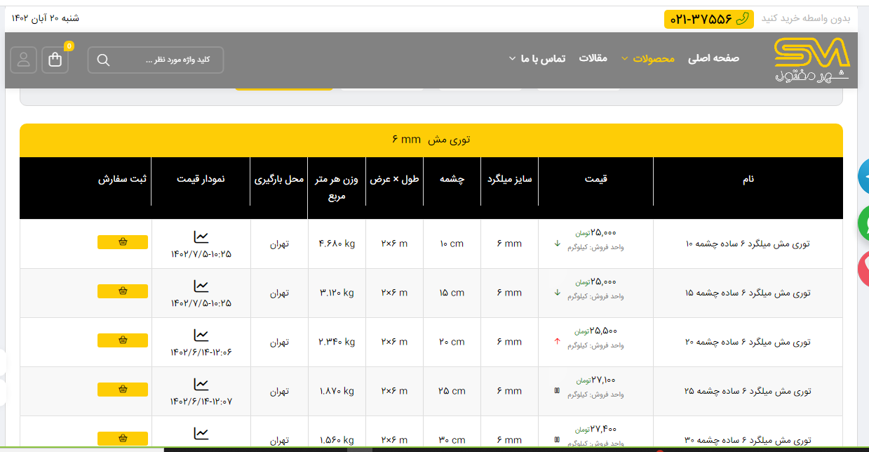 اعلام موجودی انواع توری شهر مفتول