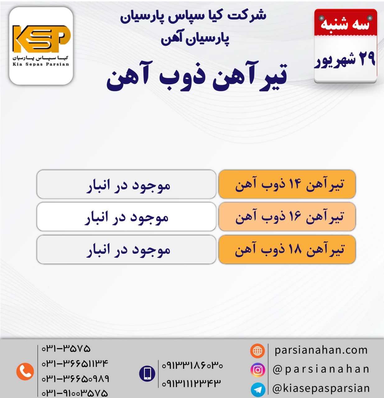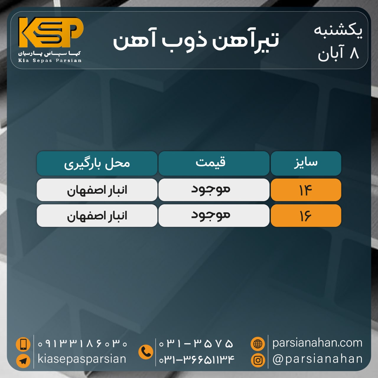 لیست موجودی تیرآهن ذوب آهن سایز 14 _ 16 _ 18 انبار اصفهان شماره های تماس : 3575--031 /09133186030