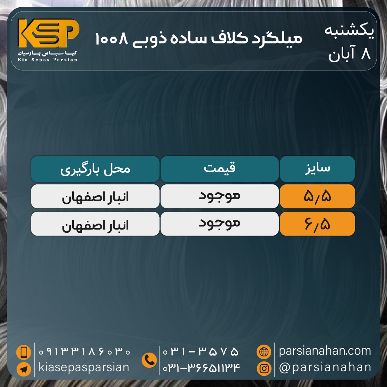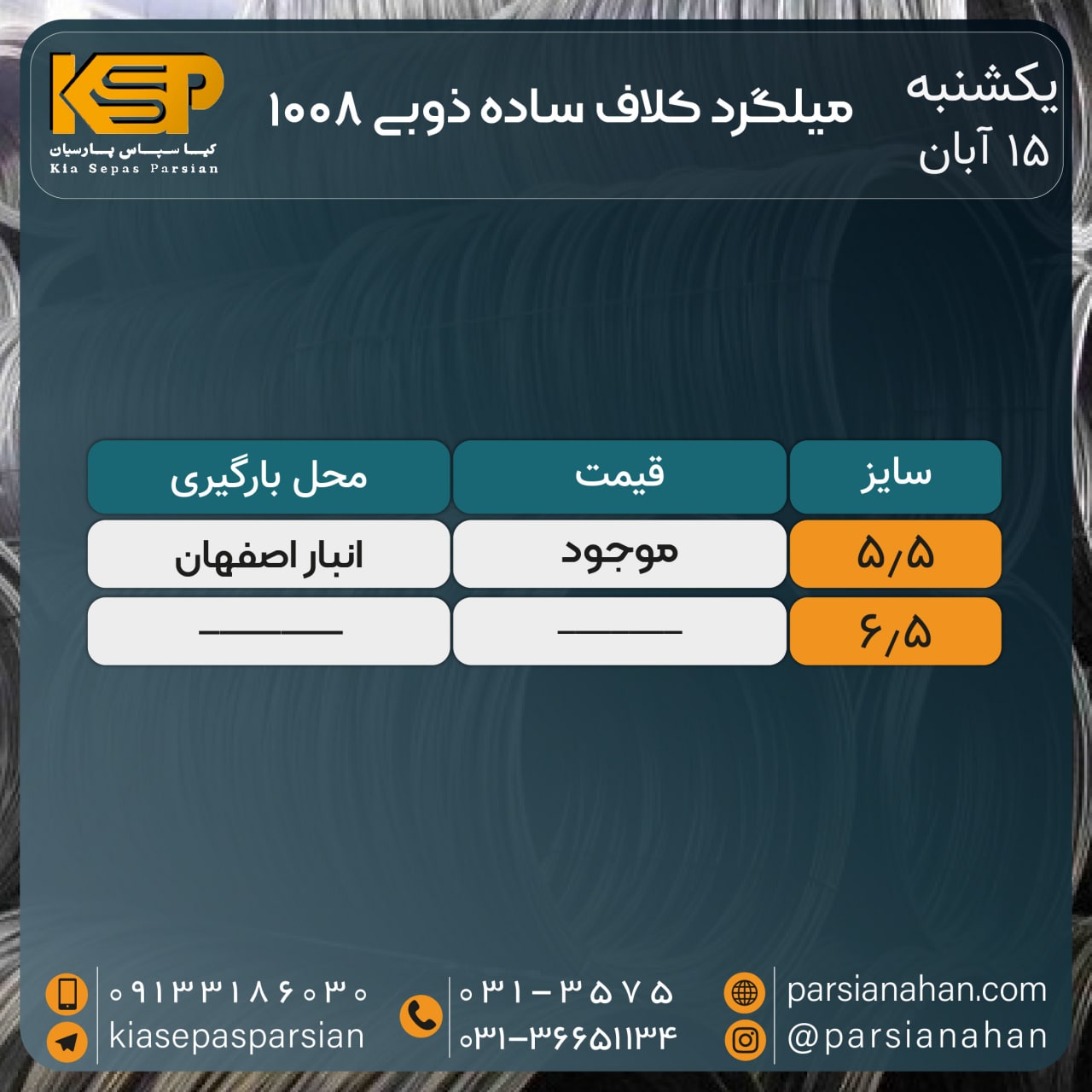 لیست میلگرد کلاف ساده ذوبی سایز 5/5 موجود انبار اصفهان سایز 6/5 موجود انبار اصفهان شماره های تماس: 3575-031 - 09133186030