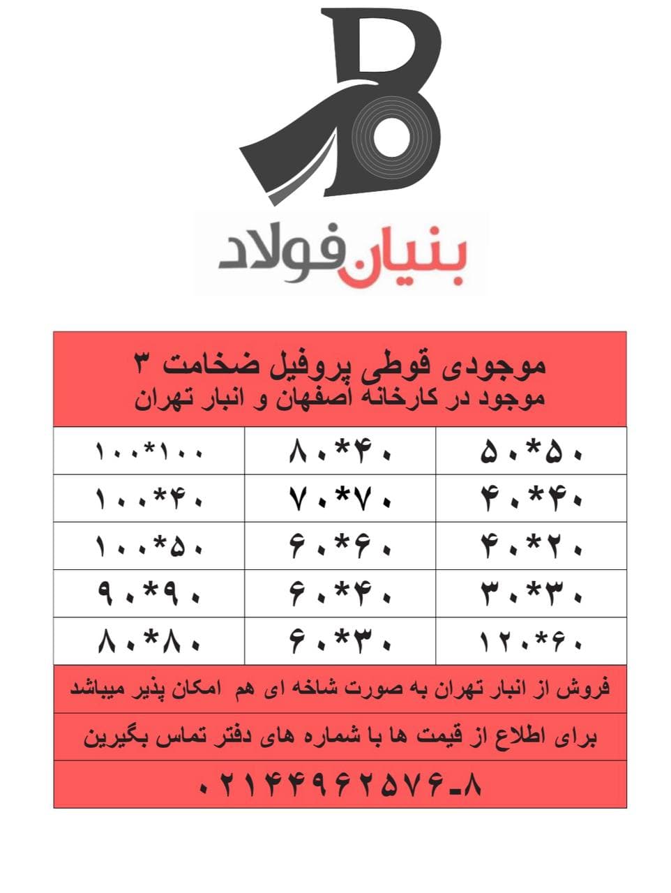 #بنیان_فولاد 🔸فروش انواع آهن آلات 🔸فروش انواع ورق سرد،گرم، 🔸فروش انواع قوطی و پروفیل و ... 🔸خدمات برشکاری ☎️۰۲۱۴۴۹۶۲۵۷۶-۸ 🌐 www.bonyanfoulad.com 🆔https://t ...