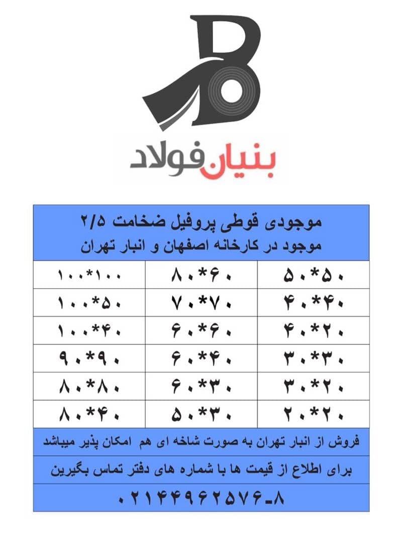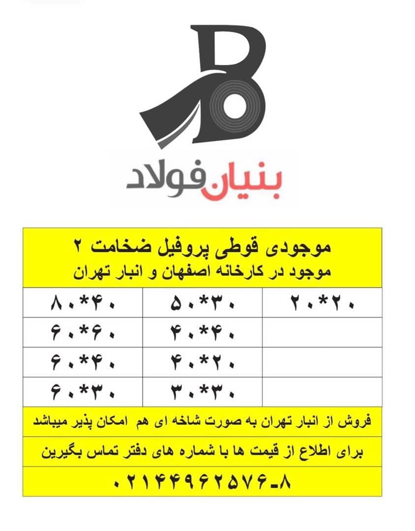#بنیان_فولاد 🔸 فروش انواع اهن الات 🔸فروش انواع ورق سرد،گرم،پروفیل و... 🔸خدمات برشکاری ☎️02144962576_8 🌐 www.bonyanfoulad.com 🆔@bonyanfoulad_com https://foo ...