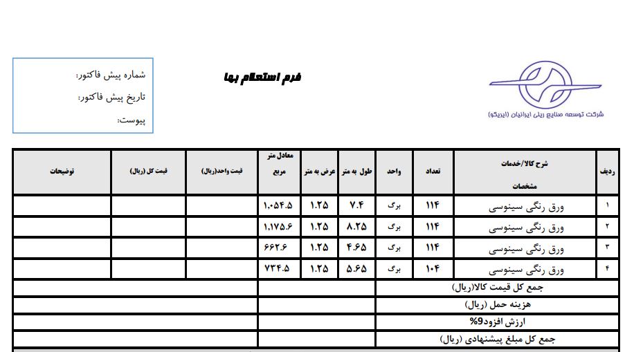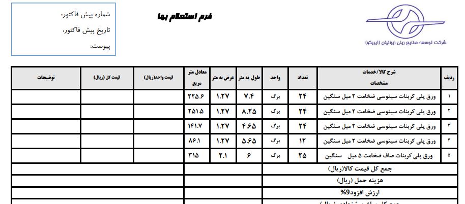 درخواستهای خرید توسعه صنایع ریلی ایرانیان