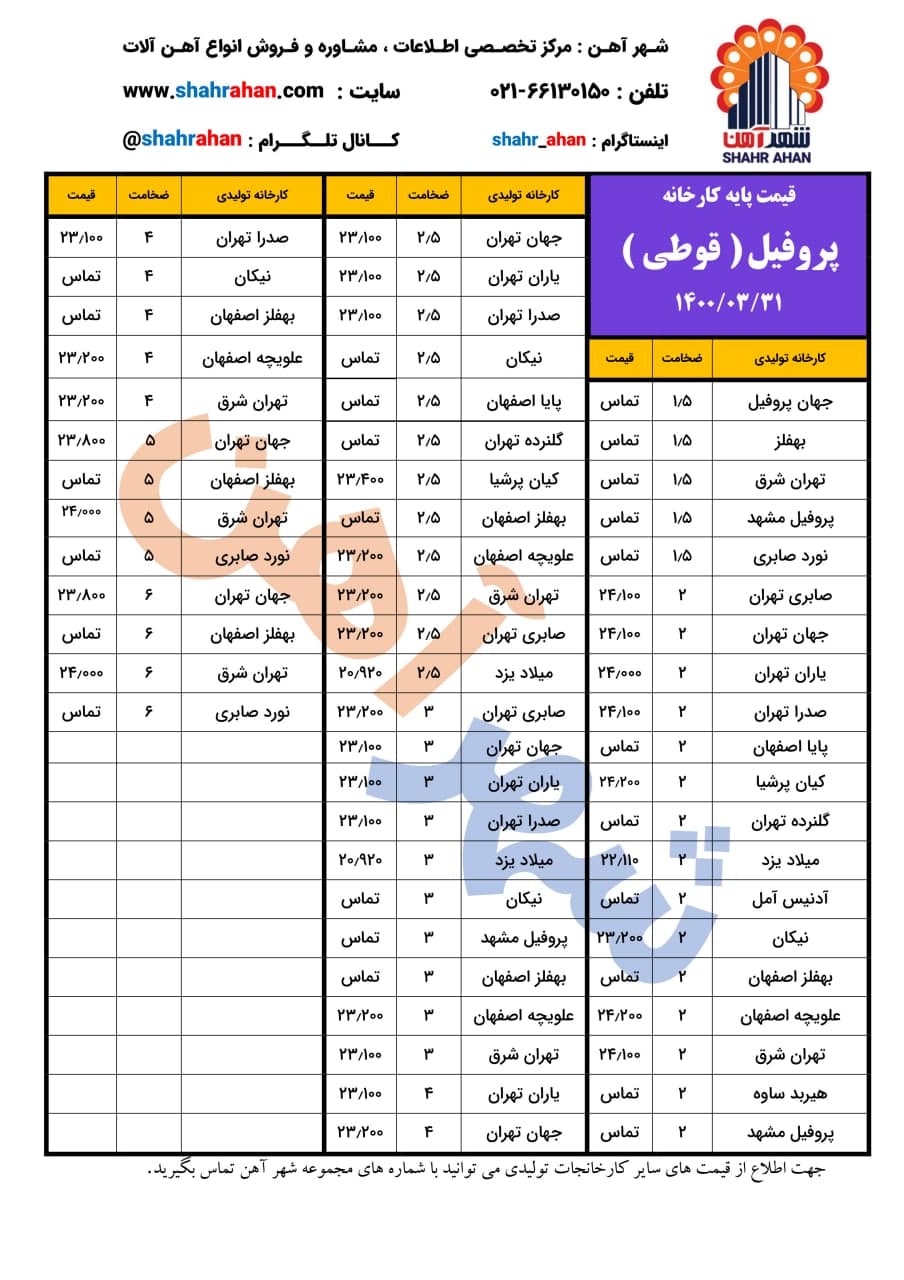 [ Photo ] 🌺🍂🍃🌺🍃🍂🌺🍃🍂 #قیمت_ورق_رنگی در کارخانه 📅 25 خرداد 1400 @shahrahan 🔸مشاهده قیمت به روز کلیه کارخانجات 👇 www.shahrahan.com 🌍آدرس مجموعه شهرآهن https ...
