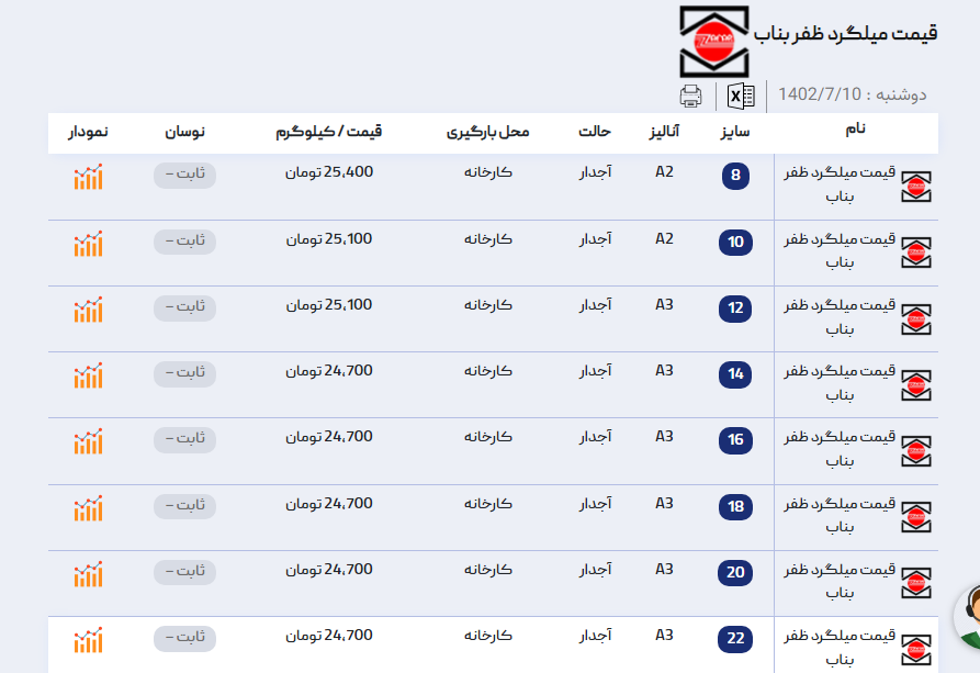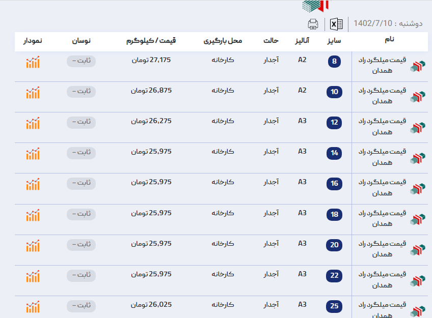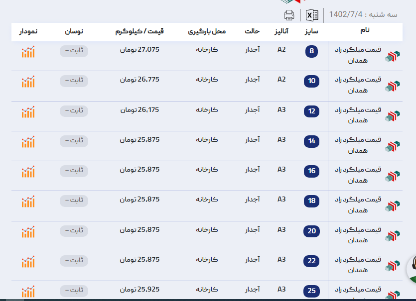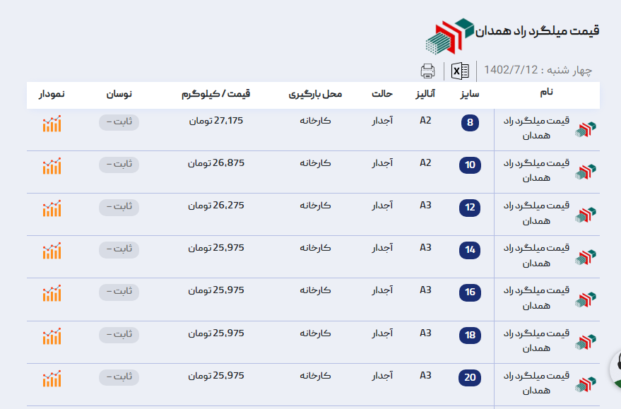 اعلام موجودی میلگرد اجدار آراد آهن 🗓شنبه 18 شهریور ماه 1402 #قیمت_میلگرد_ظفربناب📢برای مشاهده قیمت میلگرد ظفربناب کلیک کنید (https://aradahan.com/product/mi ...
