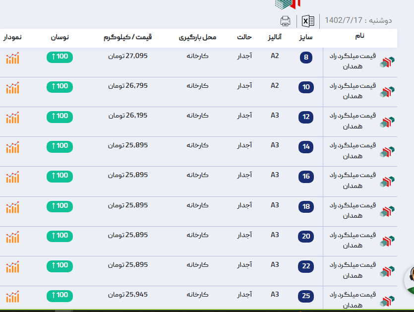 اعلام موجودی میلگرد آجدار آراد آهن 🗓یکشنبه 26 شهریور ماه 1402#قیمت_میلگرد_رادهمدان 📢برای مشاهده قیمت میلگرد راد همدان کلیک کنید (https://aradahan.com/product/mi ...