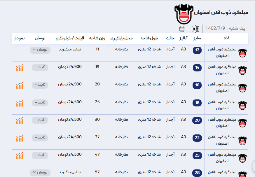 اعلام موجودی میلگرد آجدار