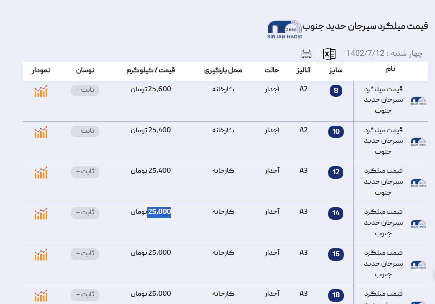 اعلام موجودی میلگرد اجدار آراد اهن 🗓دوشنبه 20 شهریور ماه 1402 #قیمت_میلگرد_سیرجان_حدید_جنوب📢برای مشاهده قیمت میلگرد سیرجان حدید جنوب کلیک کنید (https://aradaha ...