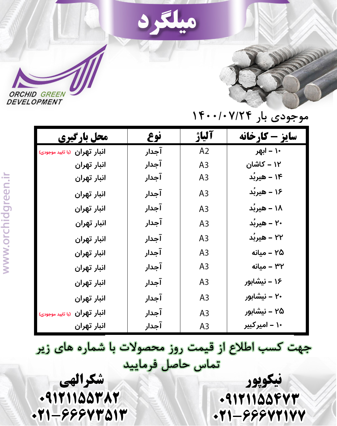 برای خرید میلگرد آجدار ، پس از مشاهده صورت بار پیوستی و شماره های تماس آن ، می توانید از فروشگاه آنلاین مخصوص خرید میلگرد ماه نیز بازدید نمایید=> www.orchidg ...