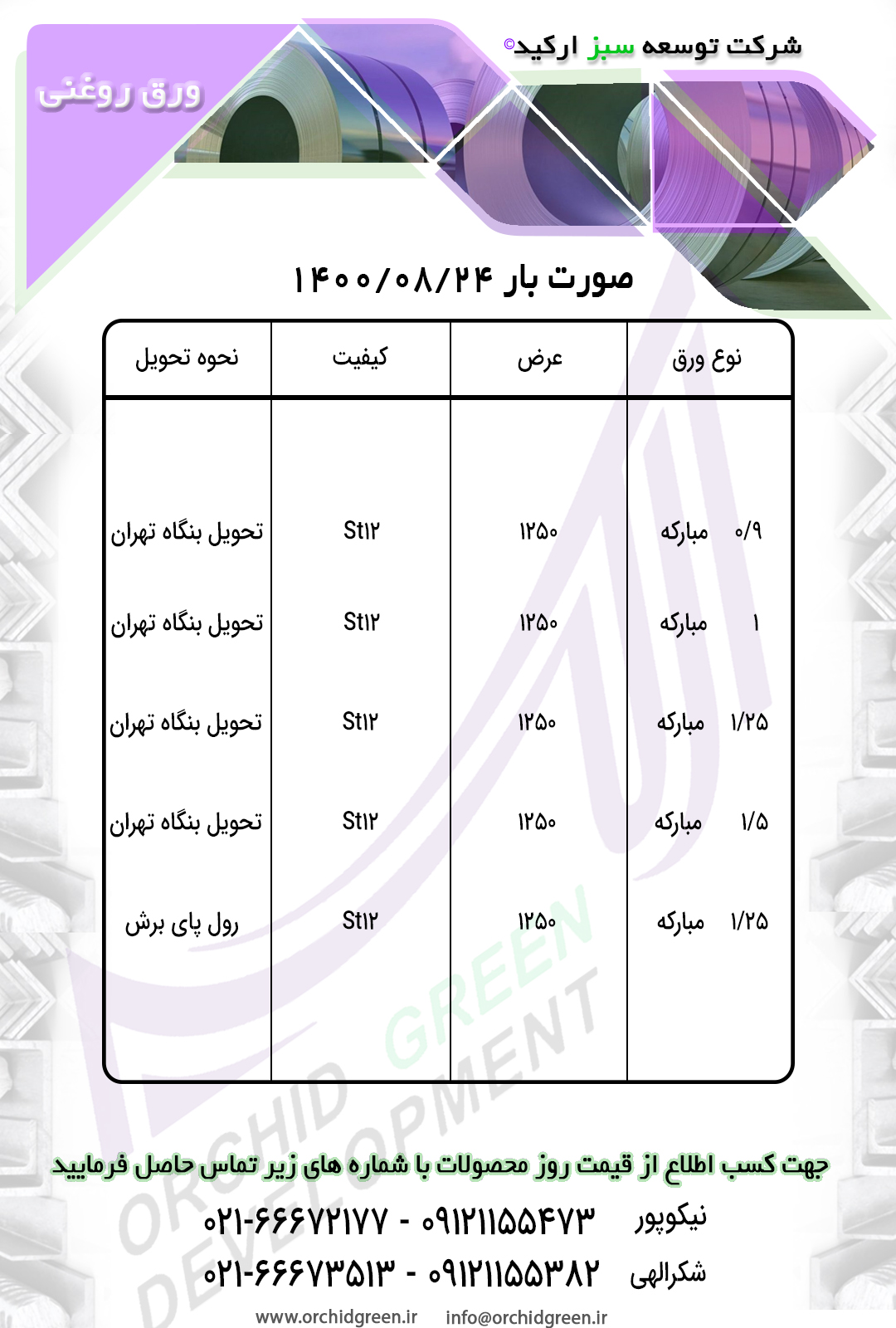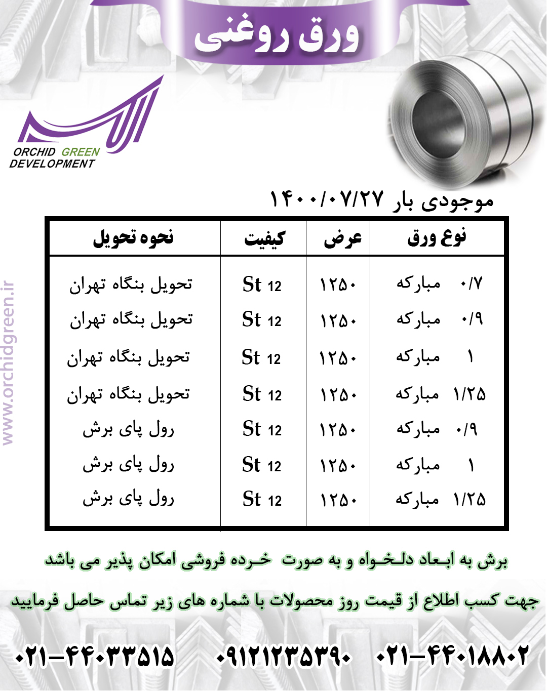 برای خرید انواع ورق روغنی و ورق سرد به شماره واتساپ 09332928115 و یا وبسایت : www.orchidgreen.ir مراجعه نمایید .