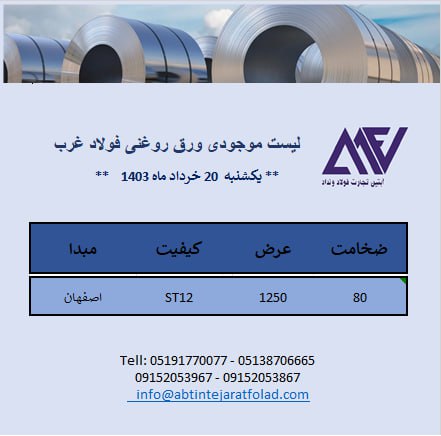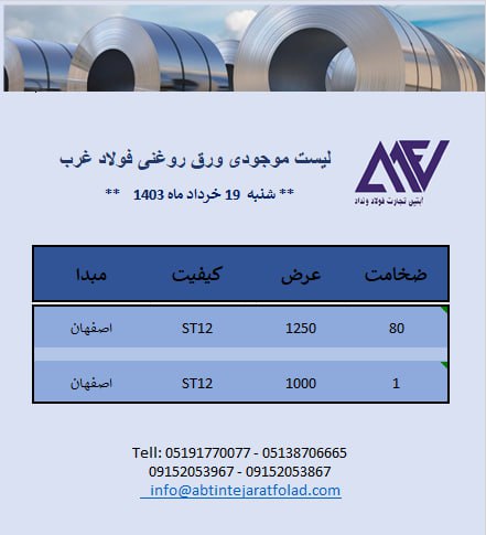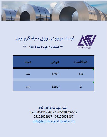 ✳️#آبتین_تجارت_فولاد_ونداد ⬅️ توزیع انواع ورق های فولادی از مبادی: 🔸ورق روغنی فولاد غرب آسیا 🔸ورق سیاه گیلان 🔸ورق سیاه مبارکه 🔸ورق گالوانیزه #جهت_مشاهده_پروفای ...