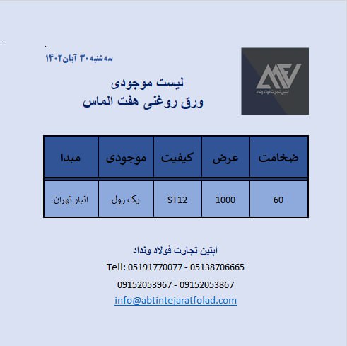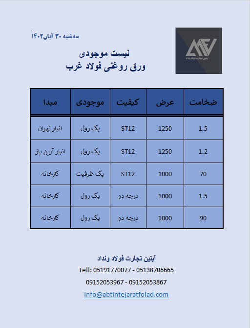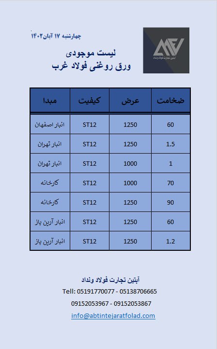 🌃#آبتین_تجارت_فولاد_ونداد ⬅️ توزیع انواع ورق های فولادی از مبادی: 🔸ورق روغنی فولاد غرب آسیا 🔸ورق سیاه گیلان 🔸ورق سیاه مبارکه 🔸ورق گالوانیزه #جهت_مشاهده_پروفایل_ ...