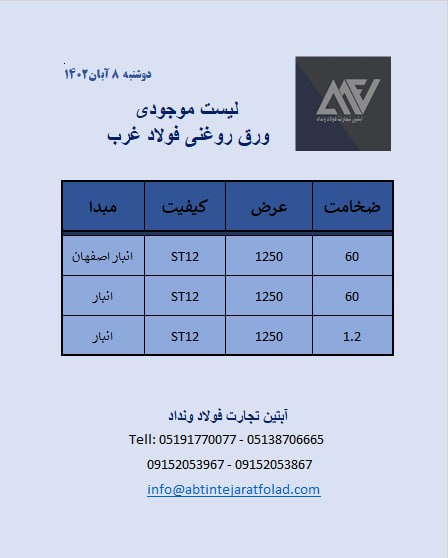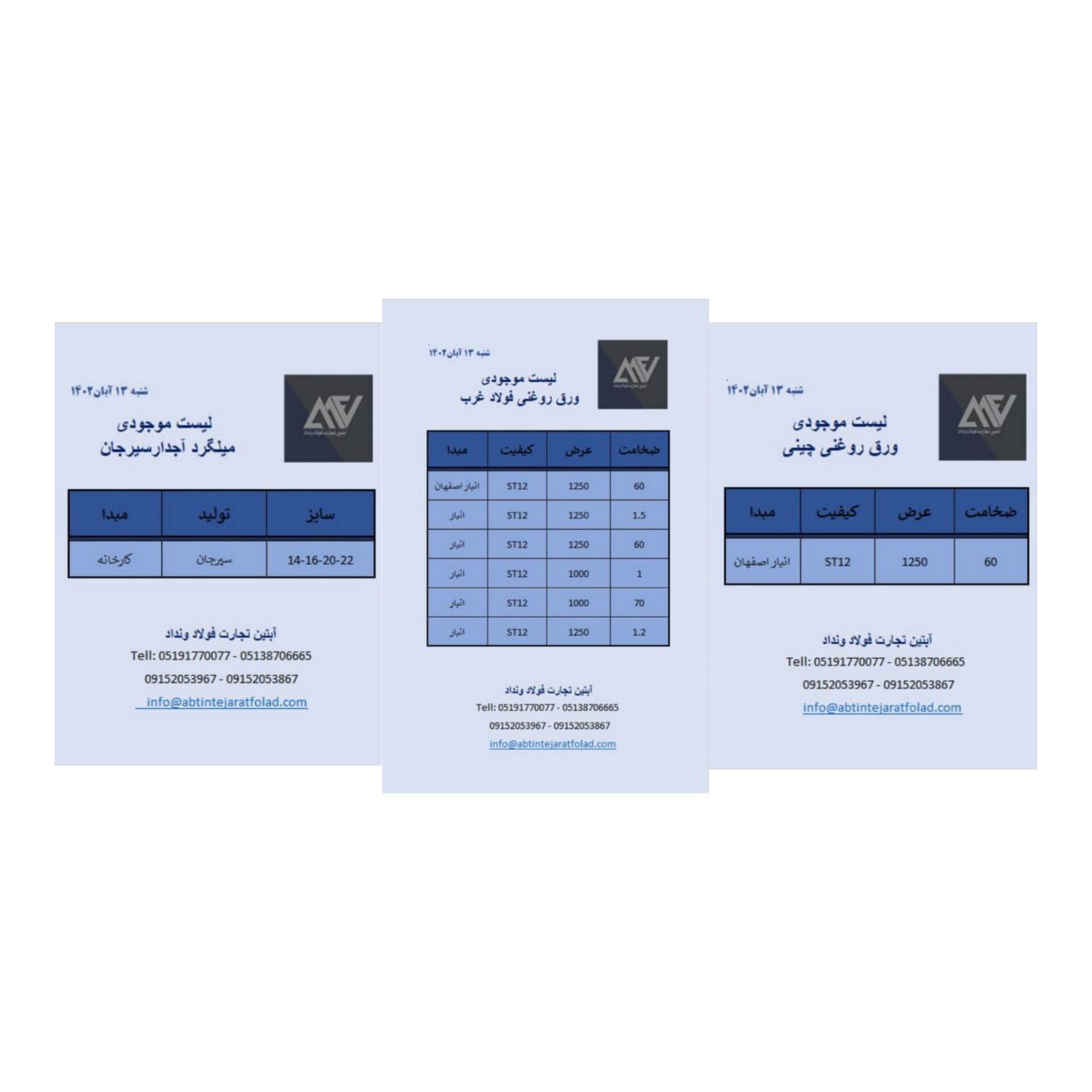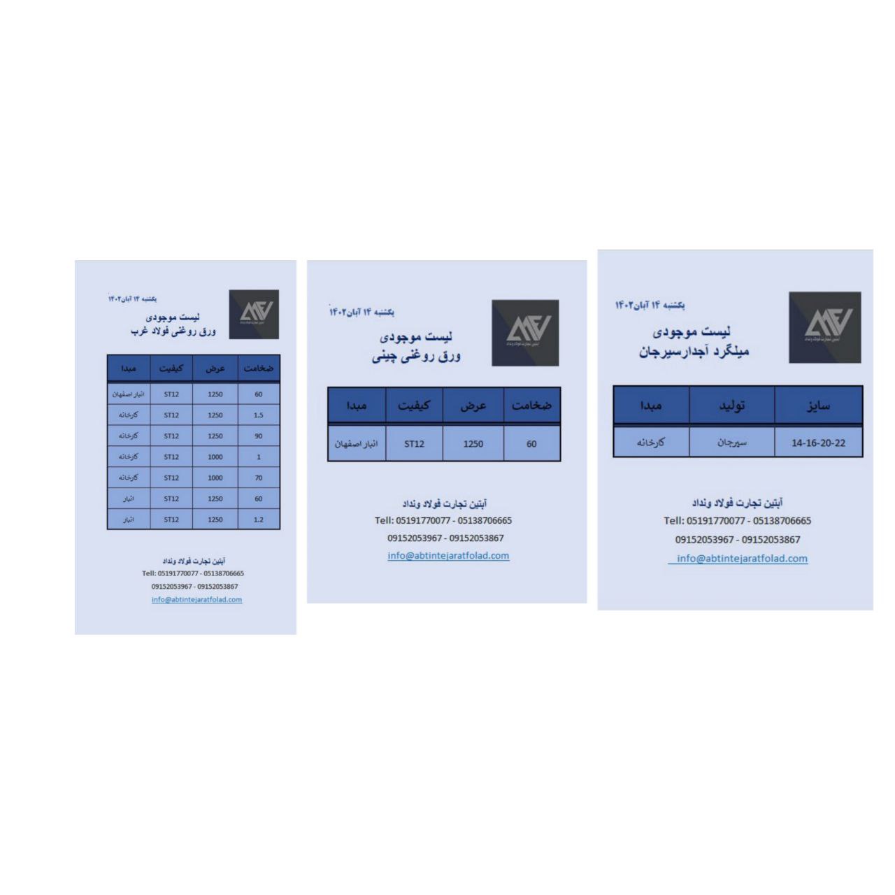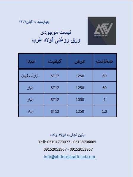 اعلام موجودی ورق گالوانیزه و رنگی