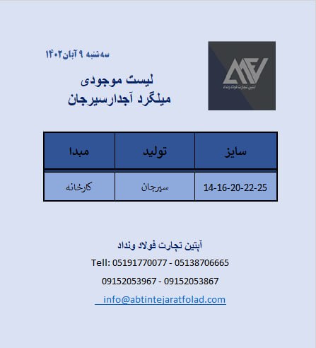 اعلام موجودی میلگرد آجدار