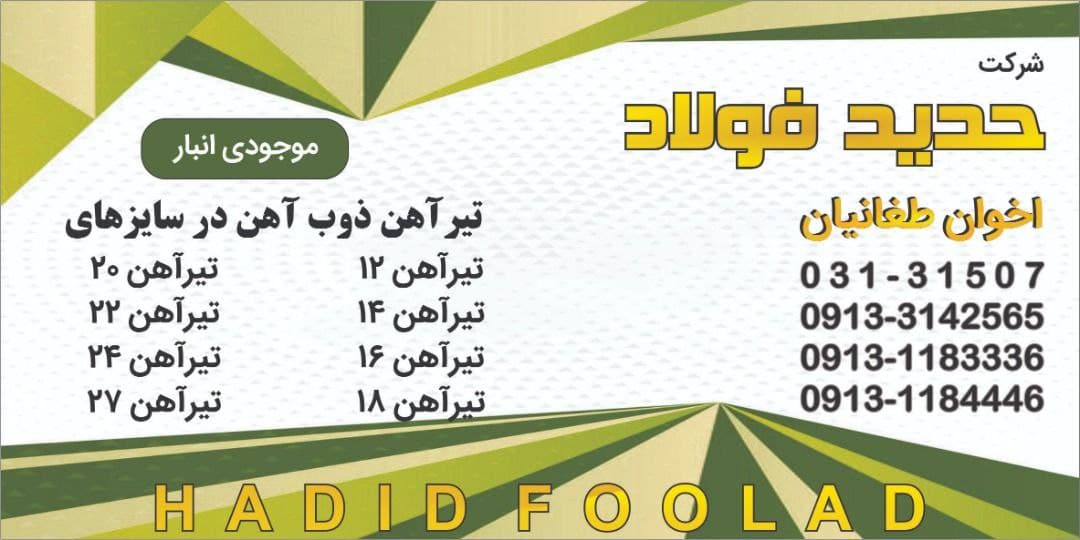 🔍 موجودی و قیمت در انبار اصفهان ( کیلوگرم ) : تیرآهن ۱۲ : ۱۴/۷۰۰ تومان تیرآهن ۱۴ : ۱۵/۳۰۰ تومان تیرآهن ۱۶ : ۱۵/۵۰۰ تومان تیرآهن ۱۸ : ۱۵/۶۵۰ تومان تیرآهن ۲ ...