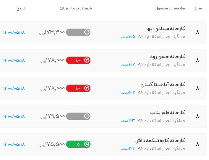 #میلگرد_آجدار کارخانه آذر فولاد امین تیکمه 🗓 سه شنبه 18 آبان ماه1400🗓 ثابت ↔️ 💠 استاندارد A2 💠 سایز 8 : 17050 سایز 10 : 16850 💠 استاندارد A3 💠 سایز 10 : ...