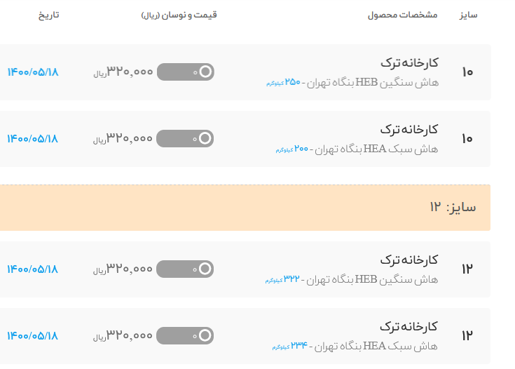 #میلگرد_آجدار کارخانه پرشین فولاد 🗓دوشنبه 18 مردادماه 1400 🗓 ثابت↔️ 💠 استاندارد A3 💠 سایز10: 17400 سایز12: 17200 ...
