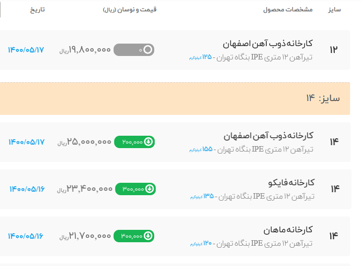 #تیرآهن ذوب آهن در انبار تهران 🗓دوشنبه 18 مردادماه 1400 🗓 سایز 12 : 1.970.00 ...