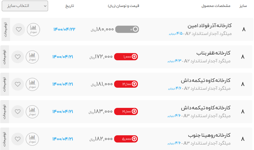 #میلگرد_آجدار کارخانه آذر فولاد امین تیکمه 🗓سه شنبه 22 تیر ماه 1400 🗓 ثابت↔️ 💠 استاندارد A2 💠 سایز 8 : 18000 سایز 10 : 17800 💠 استاندارد A3 💠 سایز 10 : ...