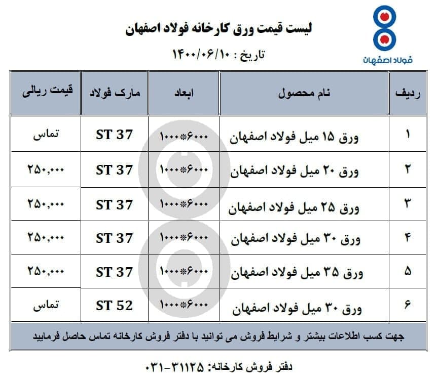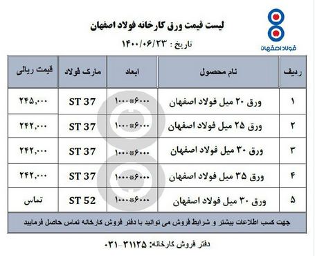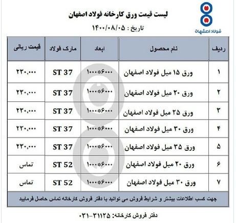 قیمتهای فولاد اصفهان