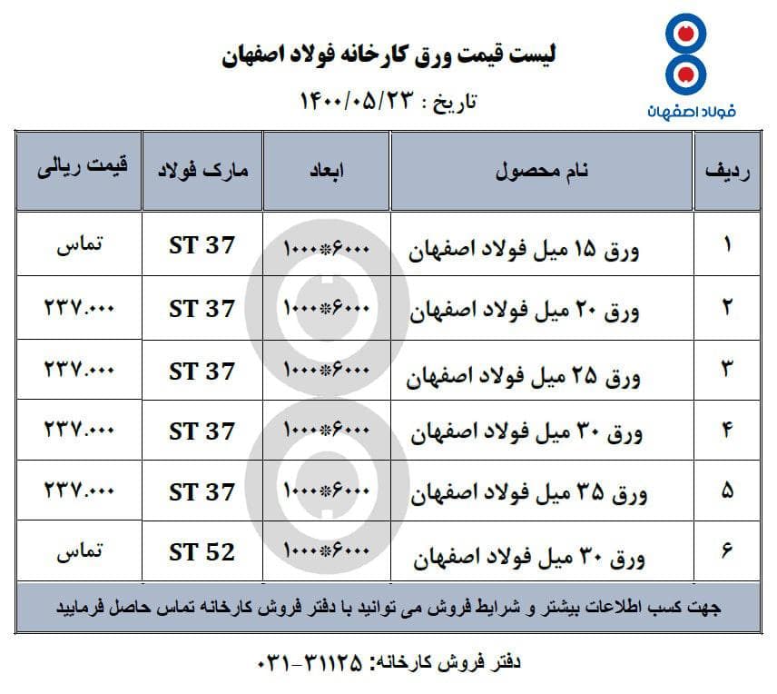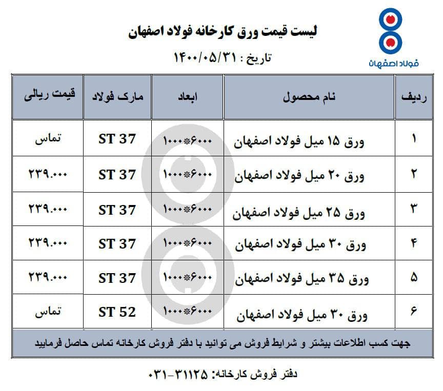 🔴🔴فروش ویژه ورق درجه دو ۲۴۳,۰۰۰ ریال #ورق_فولاداصفهان @EsfahanSteelCo ☎️031-31125