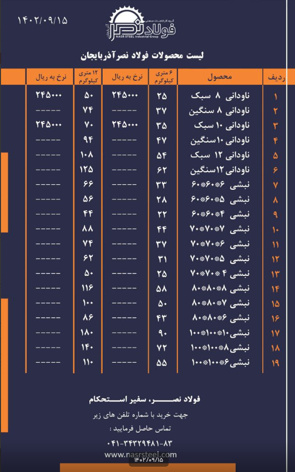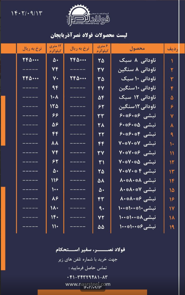 💠 گروه کارخانجات #فولاد_نصر_آذربایجان 📌تولید کننده انواع ناودانی ، نبشی و تیرآهن با استاندارد های روز دنیا 📌صادر کننده نمونه استانی #جهت_مشاهده_پروفایل_فولاد ...
