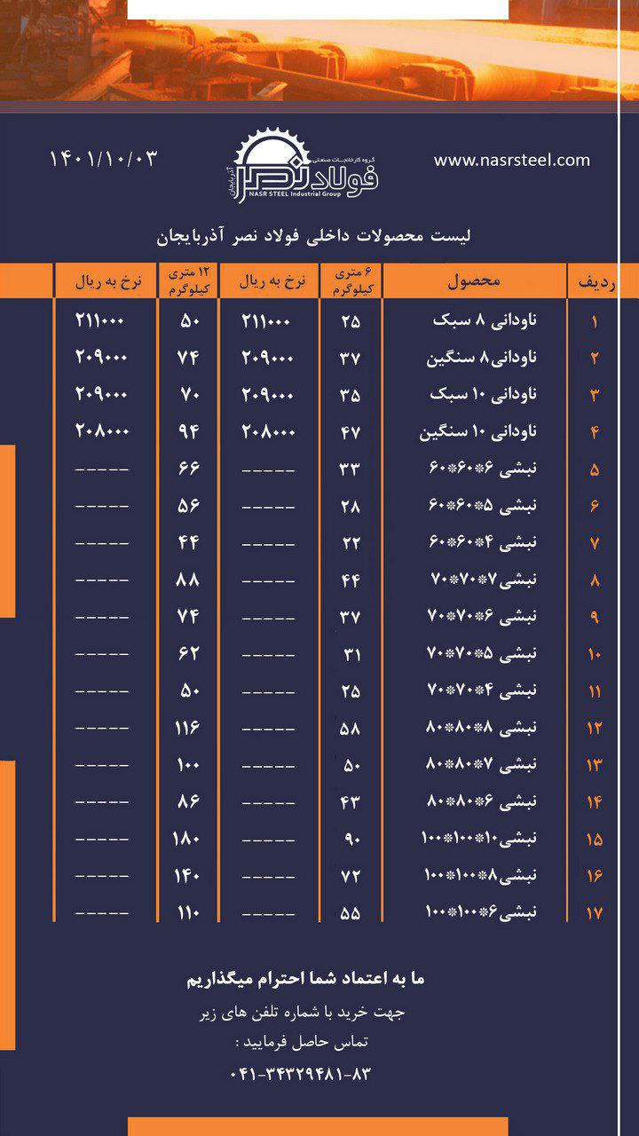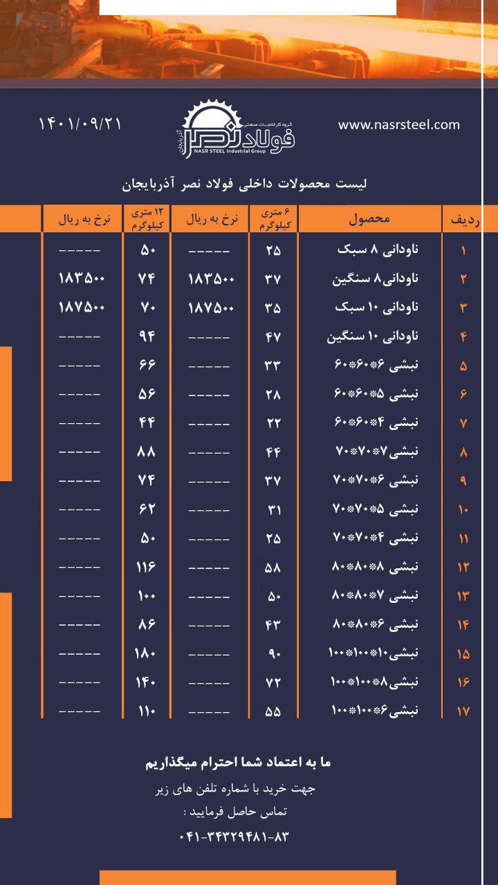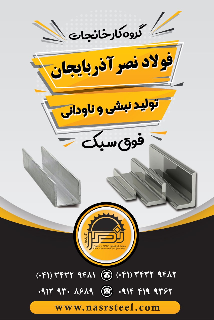 گروه کارخانجات فولاد نصر آذربایجان 📌تولید کننده انواع ناودانی ، نبشی و تیرآهن با استاندارد های روز دنیا 📌صادر کننده نمونه استانی 📍آدرس کارخانه : تبریز ، جاد ...