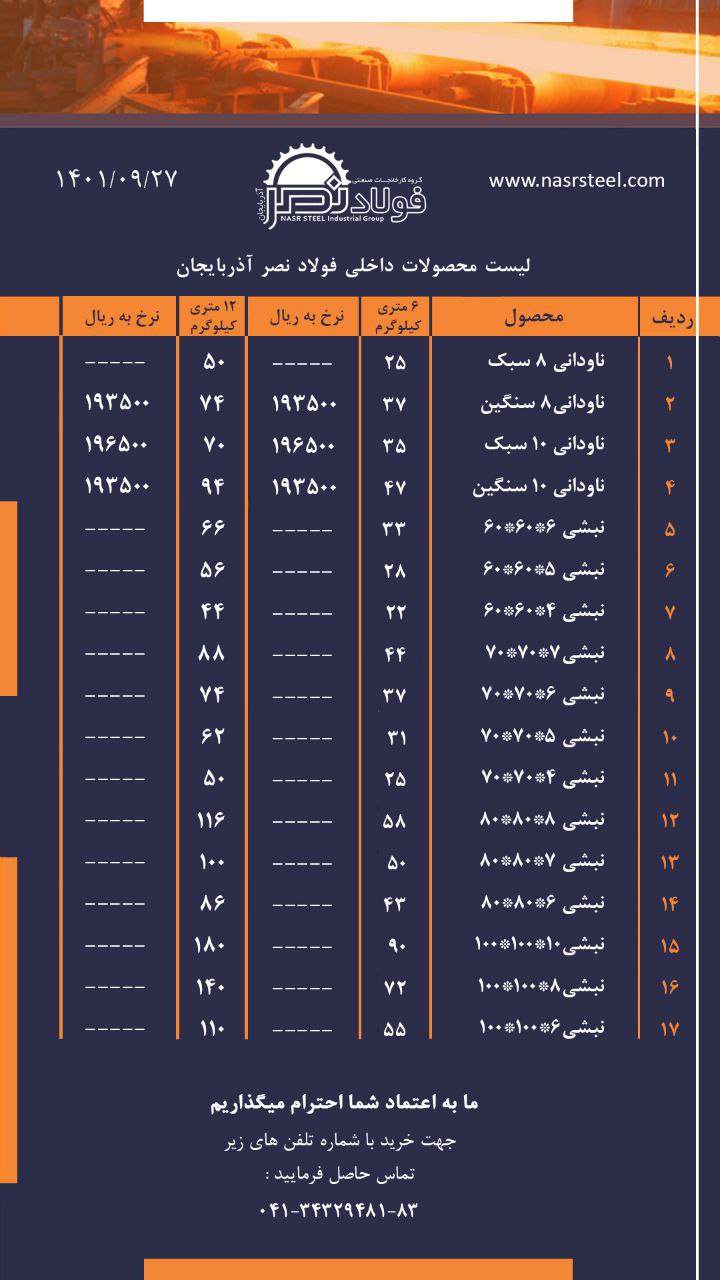 گروه کارخانجات #فولاد_نصر_آذربایجان 📌تولید کننده انواع ناودانی ، نبشی و تیرآهن با استاندارد های روز دنیا 📌صادر کننده نمونه استانی 📍آدرس کارخانه : تبریز ، جاد ...