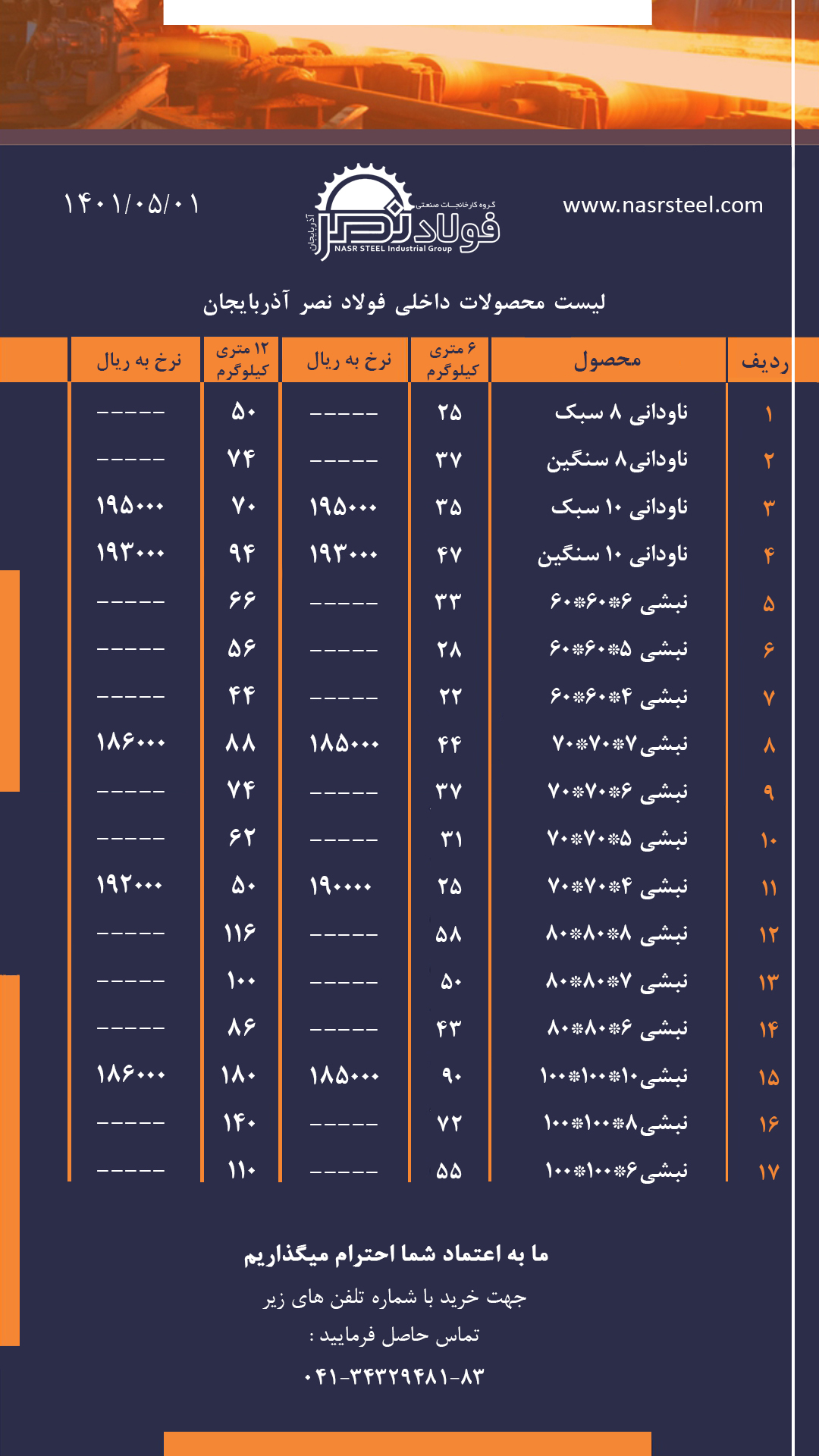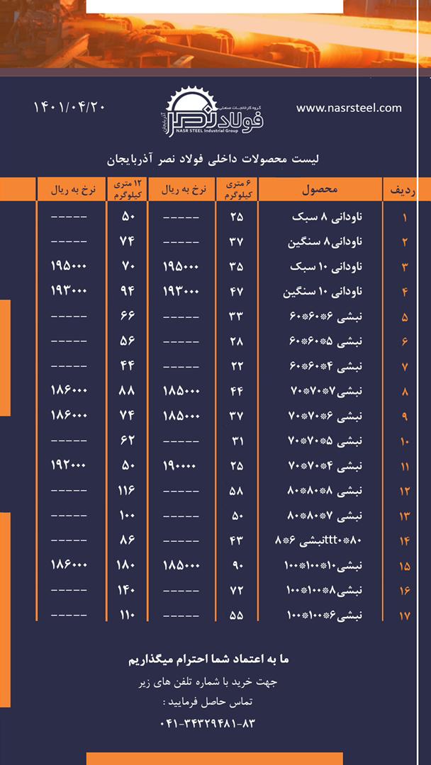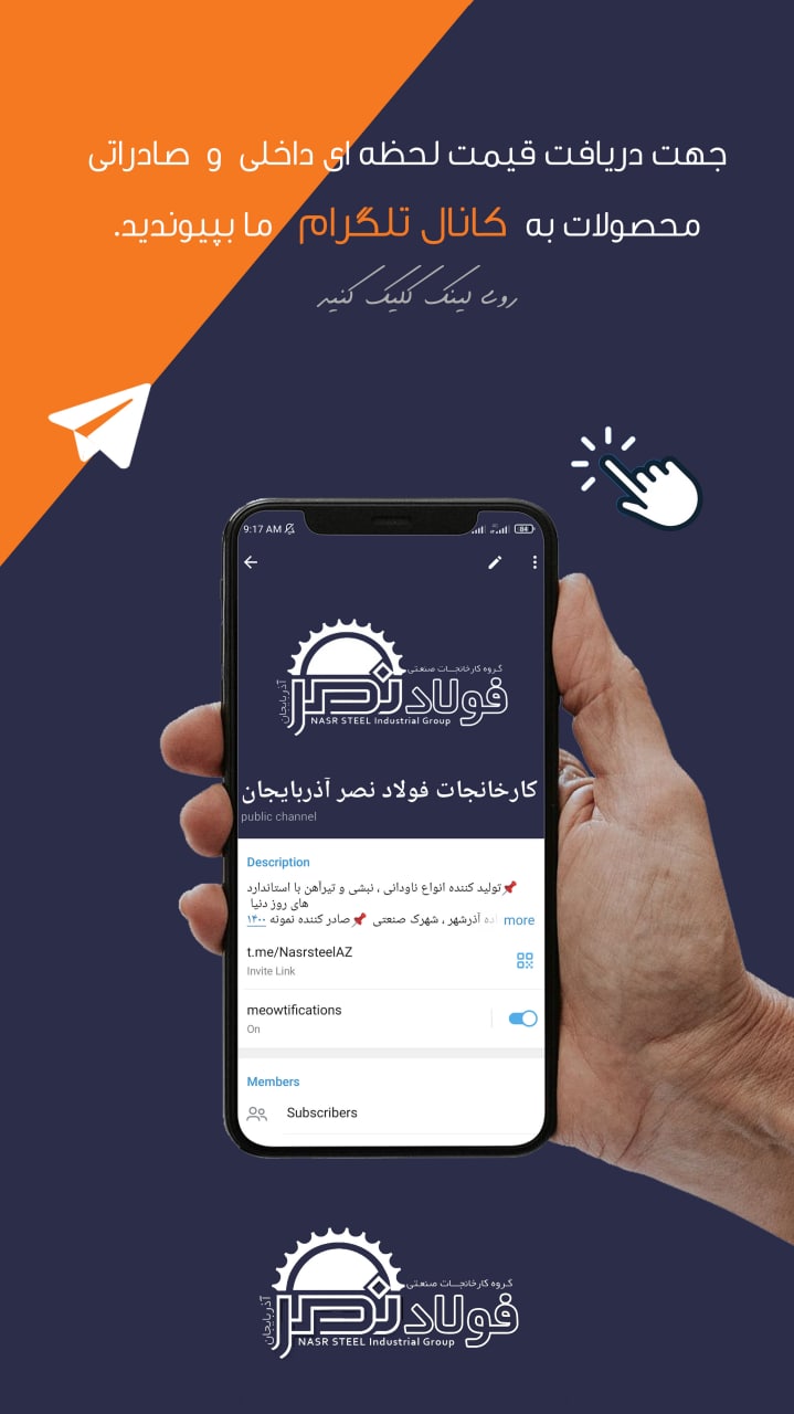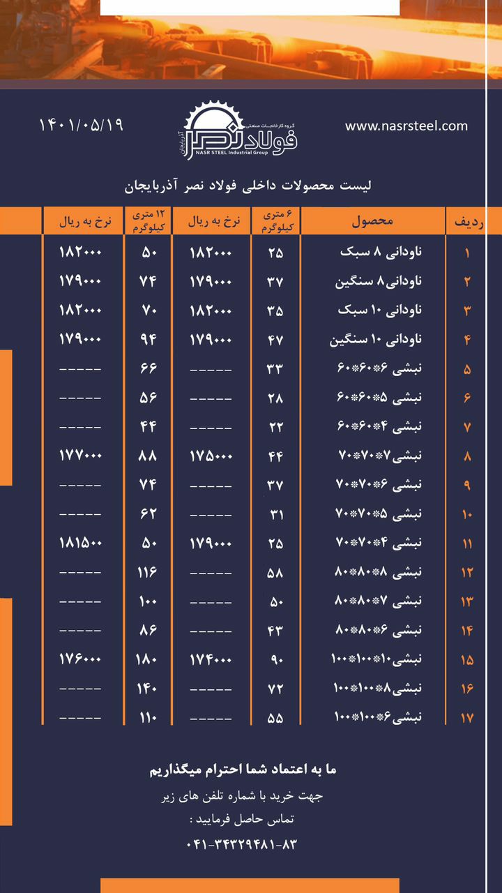 گروه کارخانجات #فولاد_نصر_آذربایجان 📌تولید کننده انواع ناودانی ، نبشی و تیرآهن با استاندارد های روز دنیا 📌صادر کننده نمونه استانی 📍آدرس کارخانه : تبریز ، جاد ...