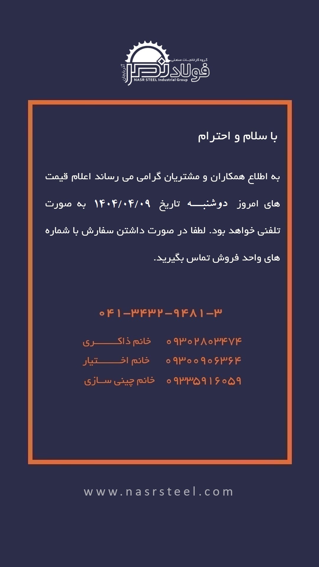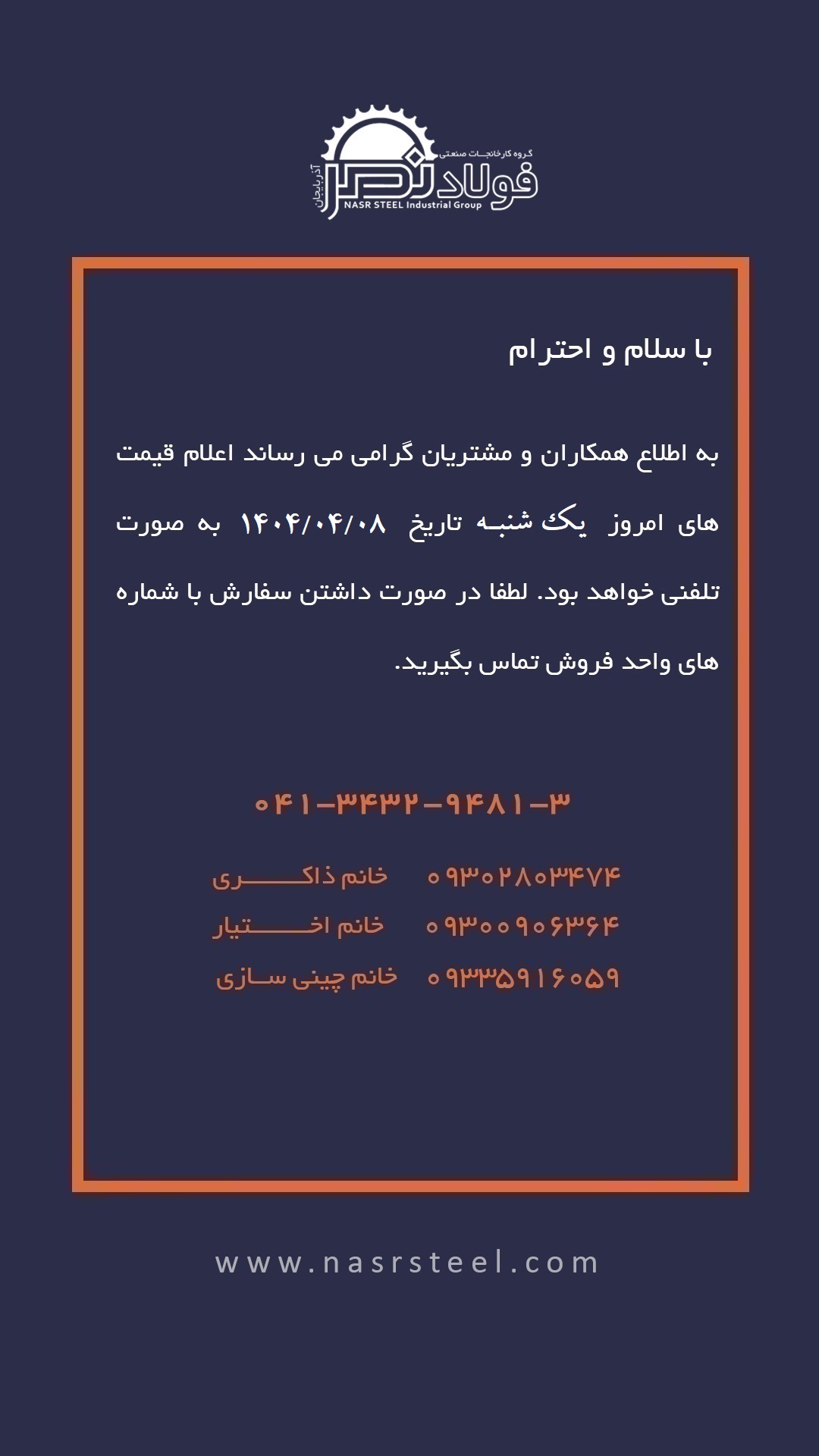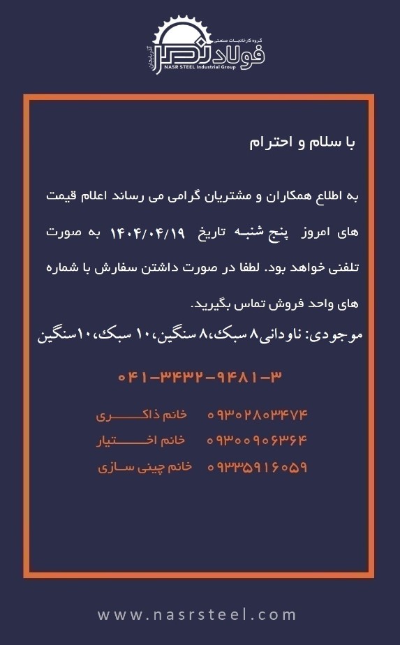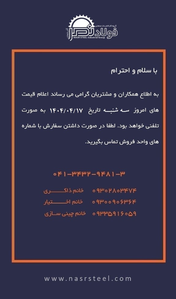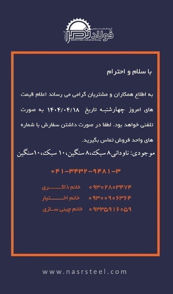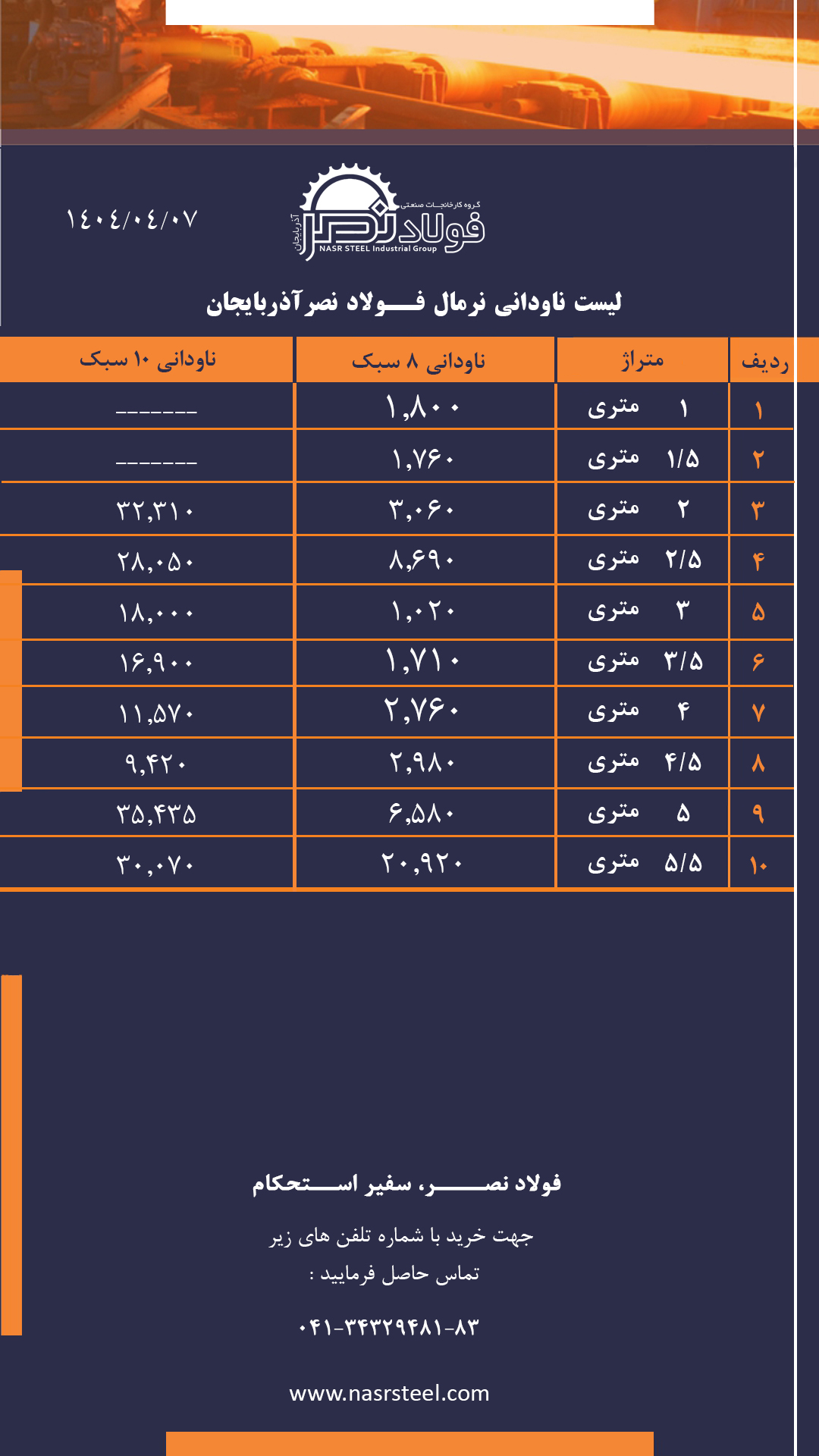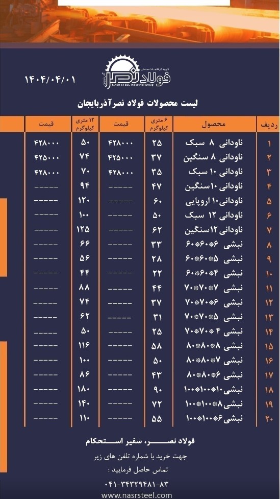 #فولاد_نصر_آذربایجان 📌تولید کننده انواع ناودانی ، نبشی و تیرآهن با استاندارد های روز دنیا 📌صادر کننده نمونه استانی 📍آدرس کارخانه : تبریز ، جاده آذرشهر ، شهرک ص ...
