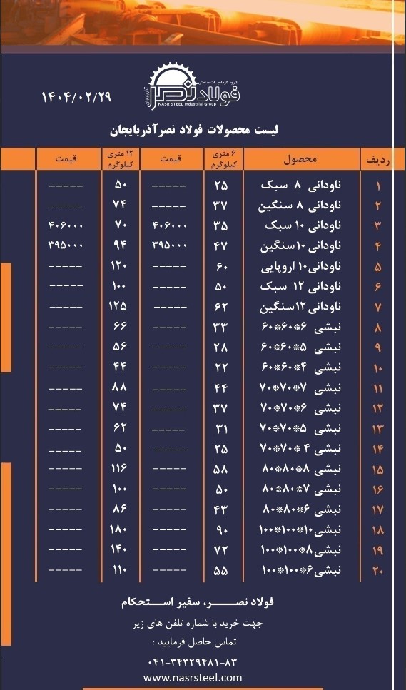 💠 گروه کارخانجات #فولاد_نصر_آذربایجان 📌تولید کننده انواع ناودانی ، نبشی و تیرآهن با استاندارد های روز دنیا 📌صادر کننده نمونه استانی #جهت_مشاهده_پروفایل_فولاد ...