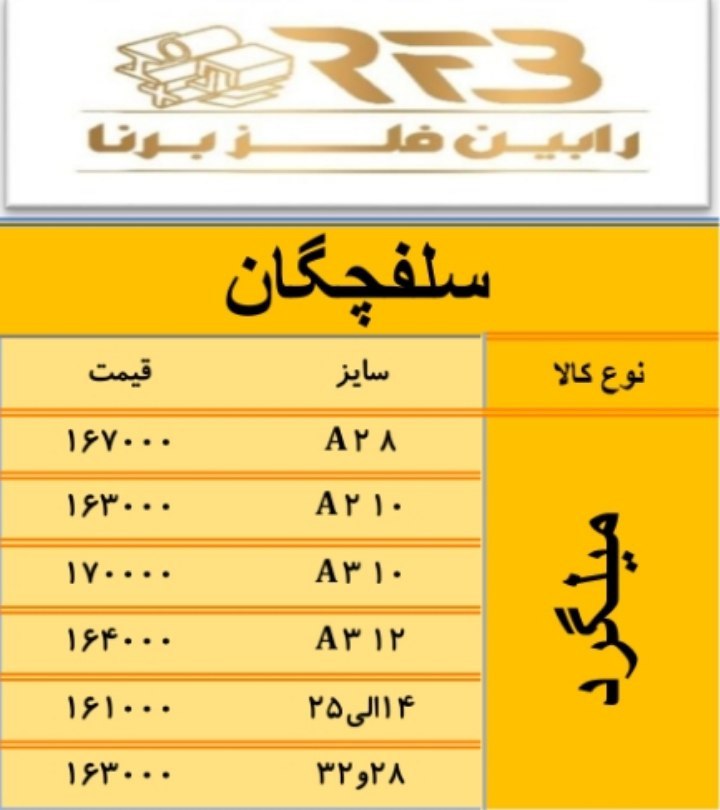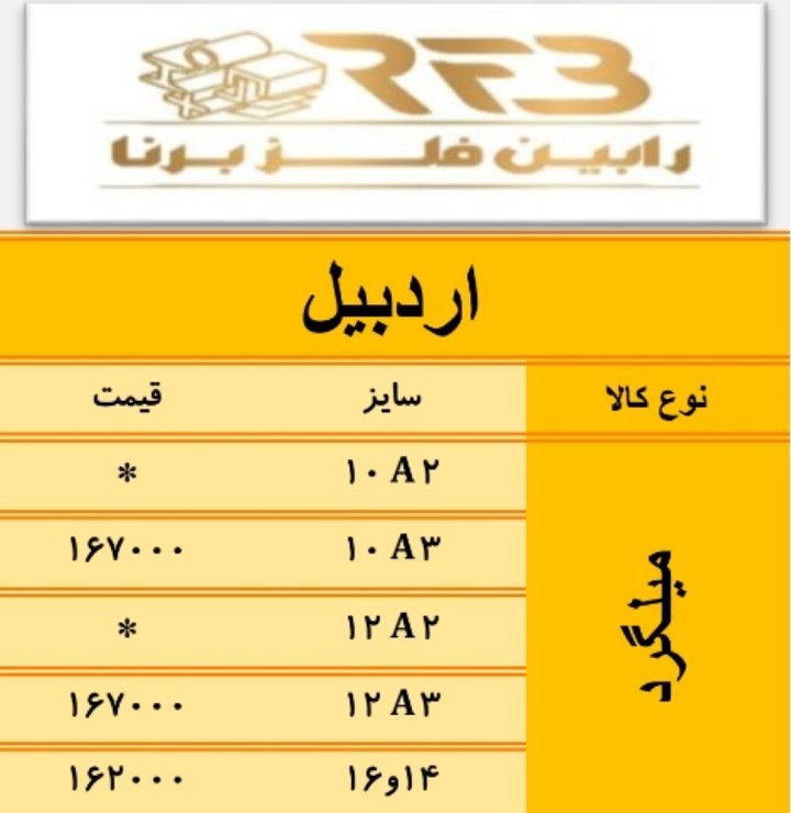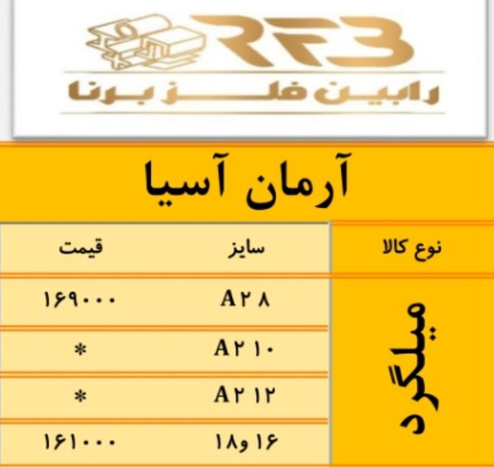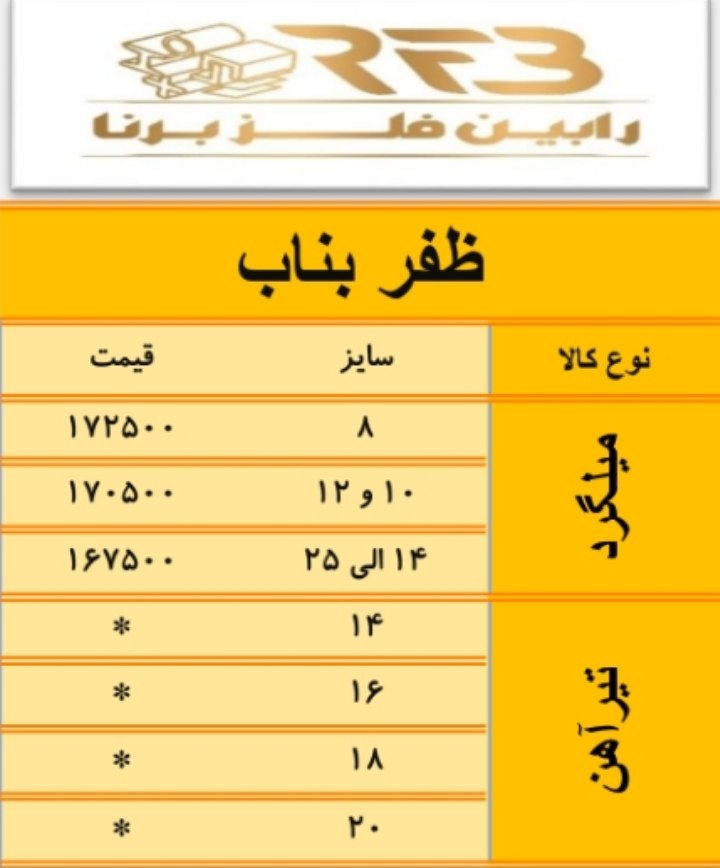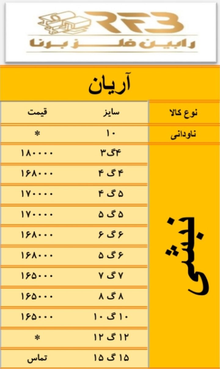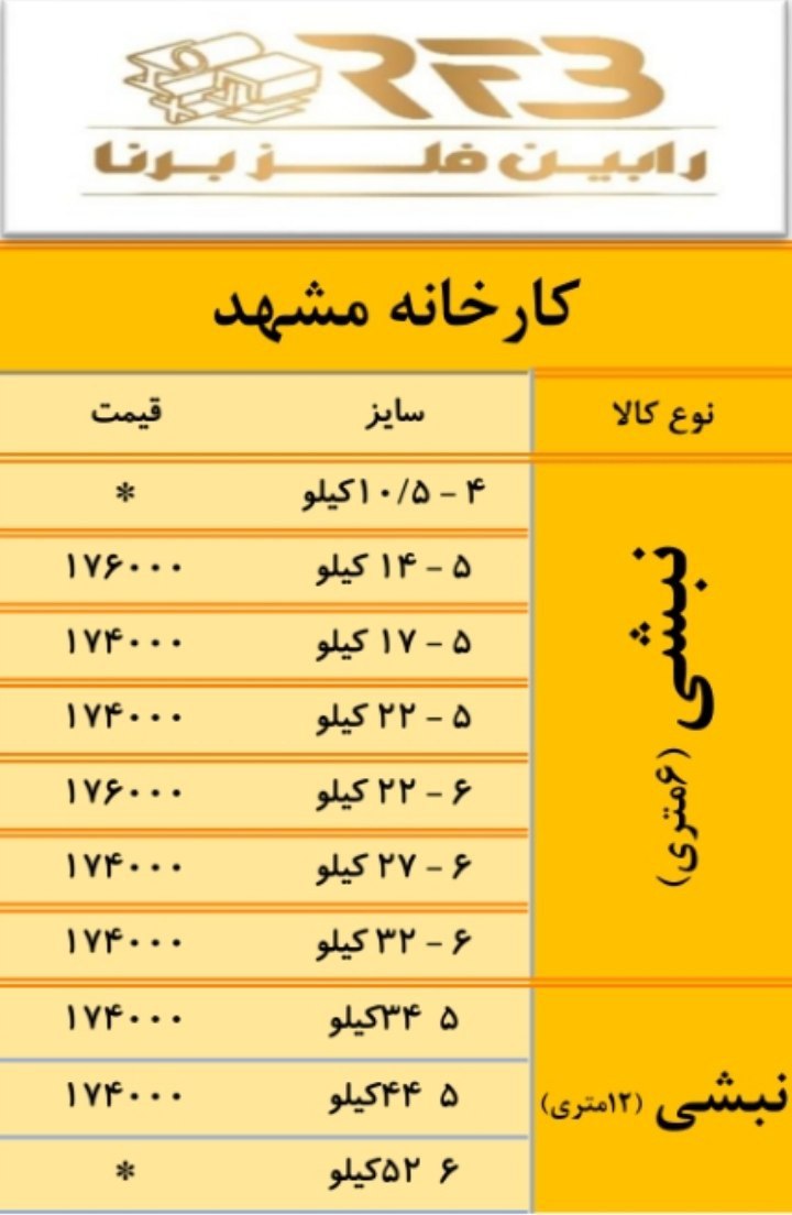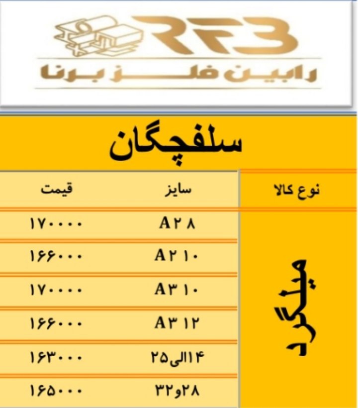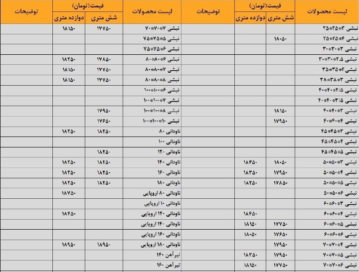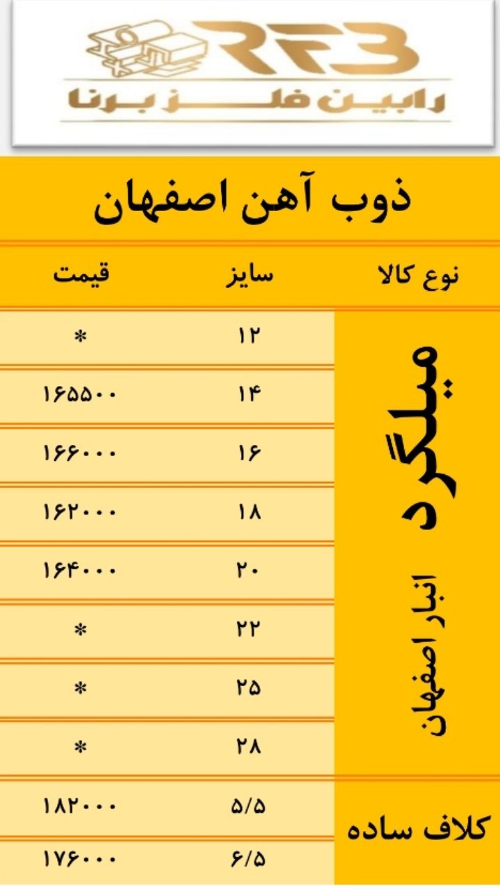 ضایعاتذوبی 1-روغنی نرمه 11450 2-روغنی ضخیم 11450 3-روغنی ریزبار و پولکی 11450 4-گالوانيزه و ورق روكشدار خودرويي 11400 5-سوپر ويژه 11400 6-كلاف 11350 7-ويژه ...
