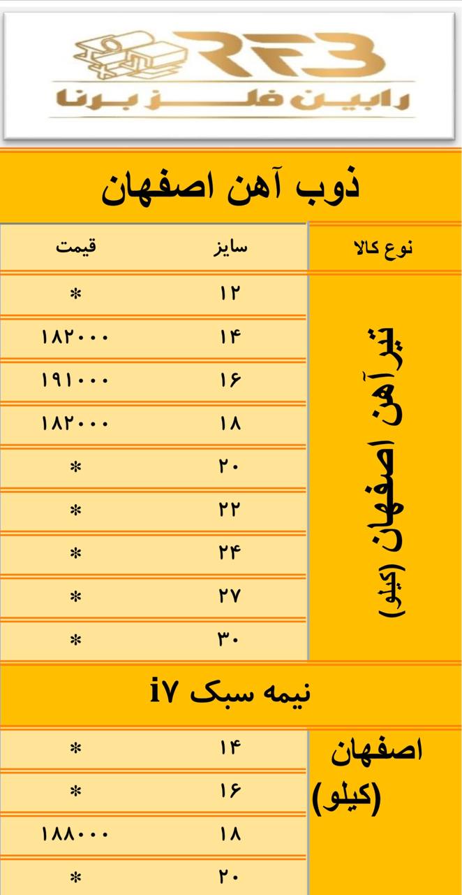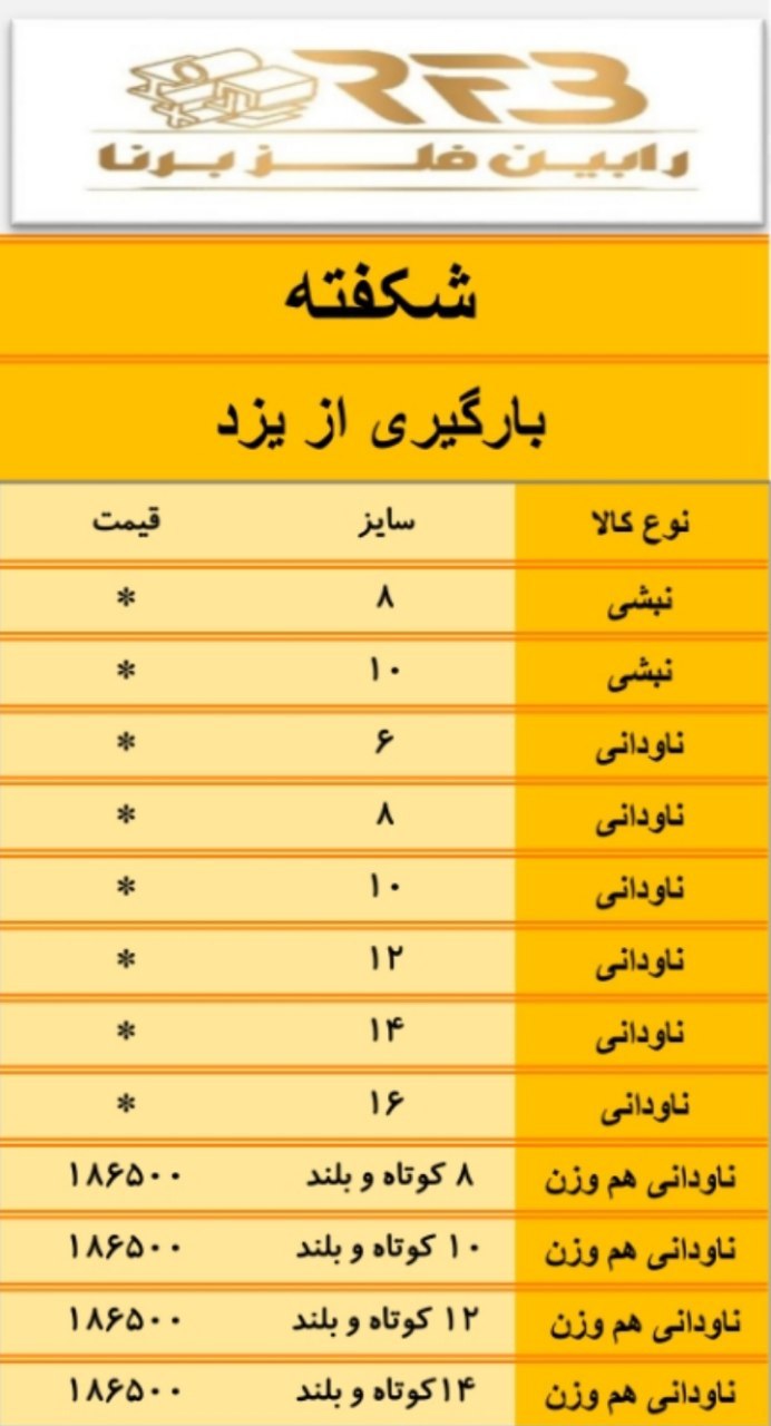 رابین فلز برنا فروش انواع آهن آلات صنعتی و ساختمانی : 🔹نبشی،ناودانی 🔸میلگرد ▫️سپری ▪️تیرآهن،هاش ▫️ورق آجدار ✅مبادی و انبار تهران
